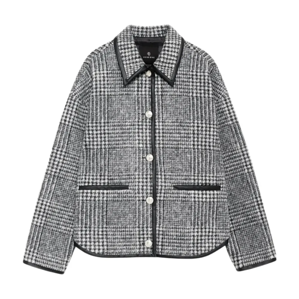 Anine Bing Camden Jacket er en moderne fortolkning af den klassiske uldjakke, designet til stilfuld lagdeling med en boxy, cropped silhuet og kontrast faux-læderkant. Vigtigste egenskaber: Grå | Uldblanding | Mellemvægt | Ikke-stretch | Knaplukning foran | To forlommer | Fuldt foret | Plaidmønster i sort og grå | Spread collar | Kontrast faux-læderkant | Sølvknapper | Mål og pasform: Længde: 65 cm (størrelse S) | Bryst: 112 cm (størrelse S) | Ærmelængde fra midten af ryggen: 89 cm (størrelse S) | Boxy pasform | Cropped længde (størrelse S) | Sammensætning og pleje: 87% polyester | 8% akryl | 5% uld | Maskinvask kold, hæng til tørre.