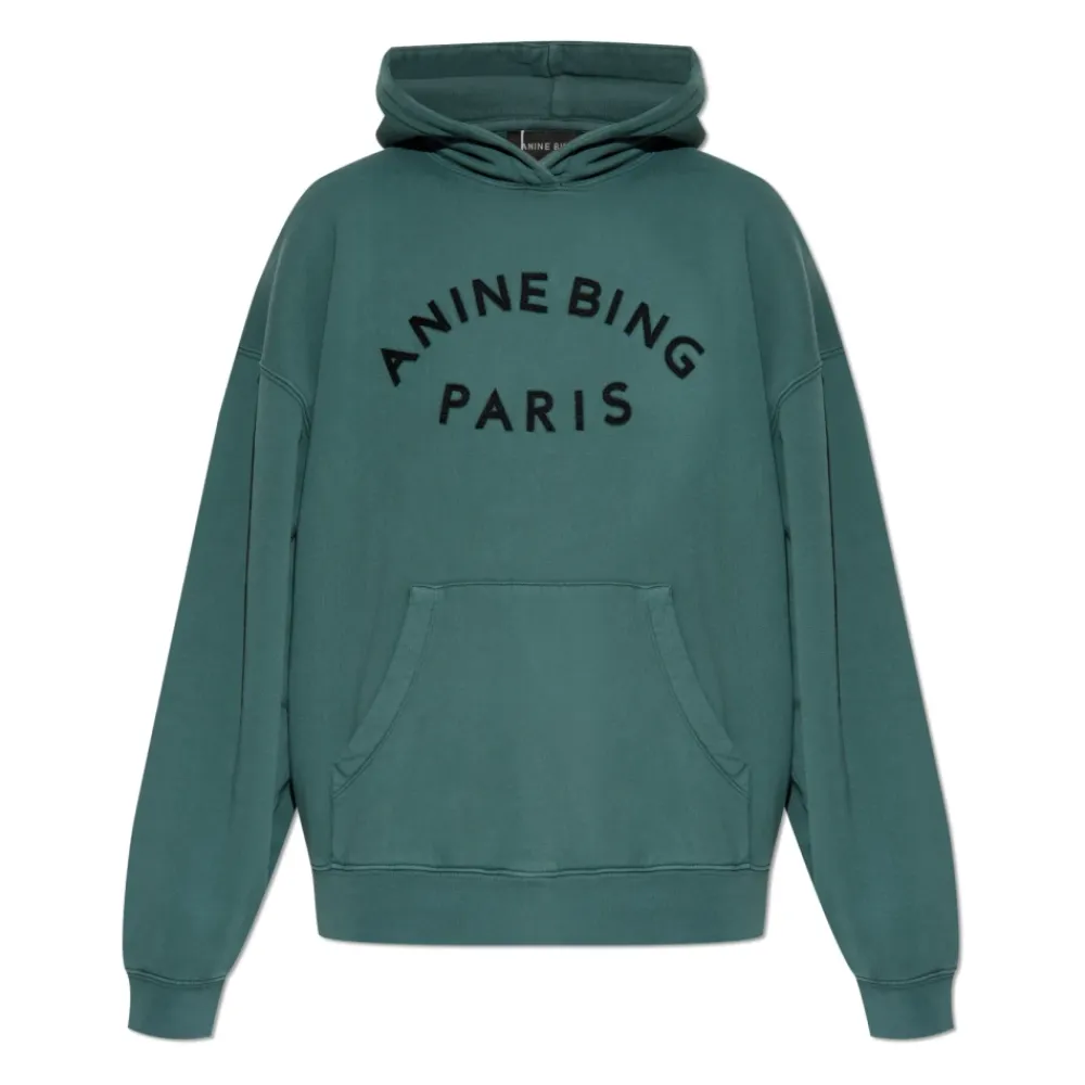 Anine Bing Harvey Sweatshirt er en oversized bomuldshættetrøje, der kombinerer afslappet, herreinspireret stil med en markant hævet logo-detalje. Den er designet til hverdagsbrug med en rummelig silhuet og en klassisk hætte. Vigtige egenskaber: Mørk teal | Grøn | Bomuld | Mellemvægtig bomuldsfleece | Giver behagelig varme | Slidstærkt stof | Kængurulomme foran | Klassisk hætte | Nedsænket skulder | Oversized silhuet | Hævet ANINE BING PARIS skrift | Ribstrikkede kanter | Distressed kantfinish | Mål og pasform: Modelhøjde: 177 cm | Bryst: 83 cm | Talje: 61 cm | Hofter: 89 cm | Modellen er iført størrelse: S | Oversized pasform | Afslappet, herreinspireret pasform | Sammensætning og pleje: 100% bomuld | Maskinvask kold (max 30°C).