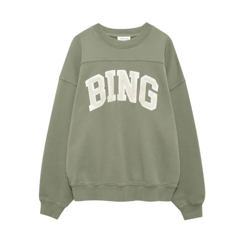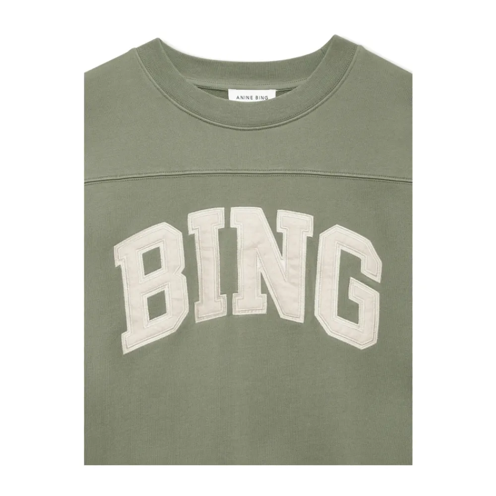 Anine Bing Appliqué Crew Neck Sweatshirt har en vasket applikationsdetalje og en klassisk crew-udskæring, designet til afslappet hverdags lag-på-lag. Nøgleattributter: Grøn | Vasket applikationsdetalje | Rund hals | Ribkant forneden | Ribkanter ved ærmerne