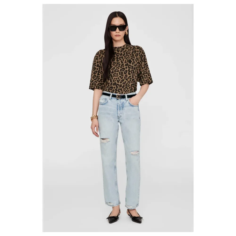 Anine Bing Avi Tee er en afslappet, boxy T-shirt i et sort og brunt leopardprint. Den er skåret i letvægts bomuldsjersey og tilbyder afslappet hverdagsbrug med et dristigt mønstret look. Nøgleattributter: Sort | Brun | Bomuld | Letvægtsjersey | Rund hals | Korte ærmer | Overalt leopardprint | Mål og pasform: Længde (størrelse S): 65,5 cm | Bryst (størrelse S): 50,8 cm | Ærmelængde (størrelse S): 26,9 cm | Boxy, oversized pasform | Normal i størrelsen | Sammensætning og pleje: 100% Bomuld | Maskinvask kold, tørretumbles ved lav varme.