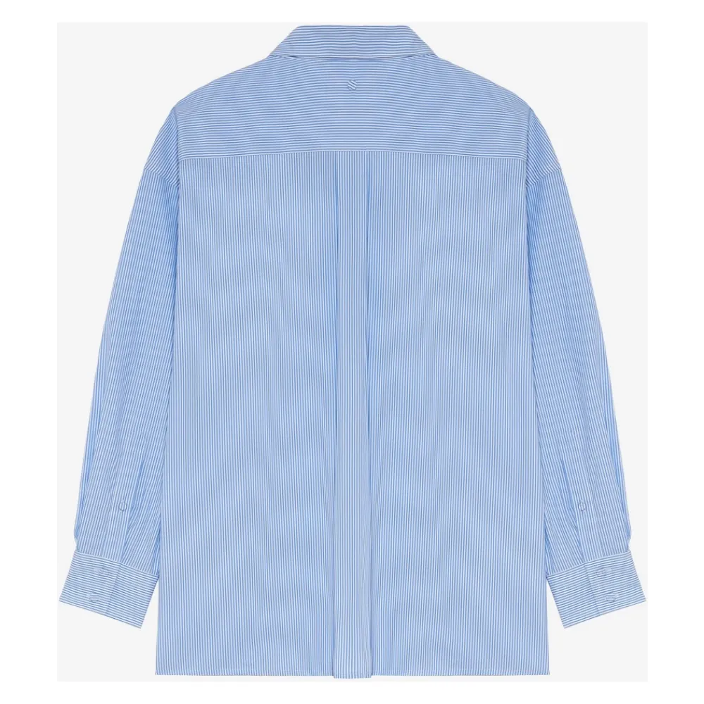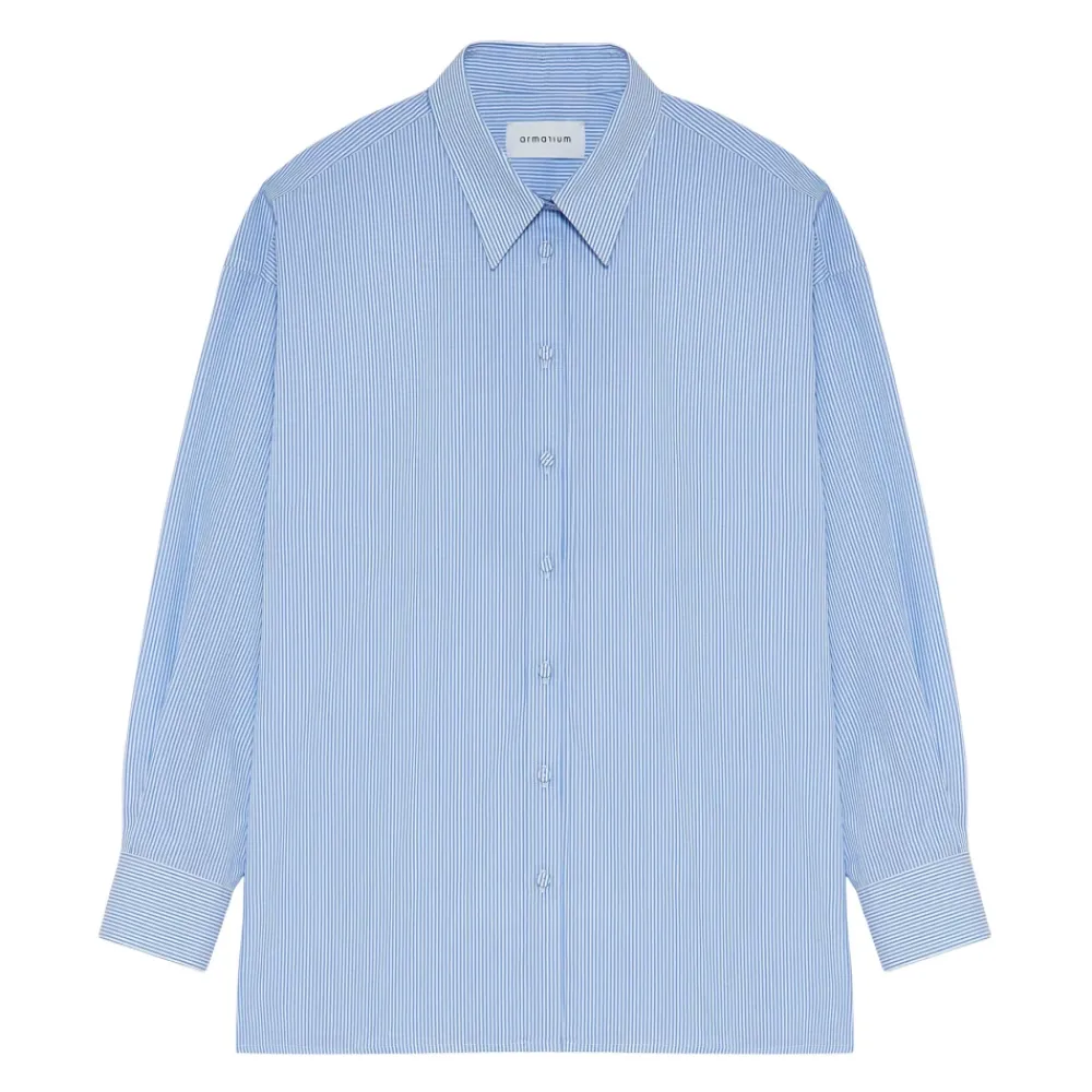 Armarium Leo Cotton Shirt er en afslappet, herreinspireret skjorte med knapper i bomuldspoplin. Det stribede mønster og den løse silhuet gør den velegnet til et afslappet hverdagslook. Vigtige egenskaber: Blå | Hvid | Bomuld | Knaplukning foran | Manchetter med knapper | Krave | Lange ærmer | Stribet mønster over det hele | Mål og pasform: Modellen er iført størrelse 40 IT | Højde: 175 cm | Bryst: 86,5 cm | Talje: 65 cm | Hofter: 92 cm | Skuldre: 40 cm | Løs pasform | Sammensætning og pleje: 100% bomuld