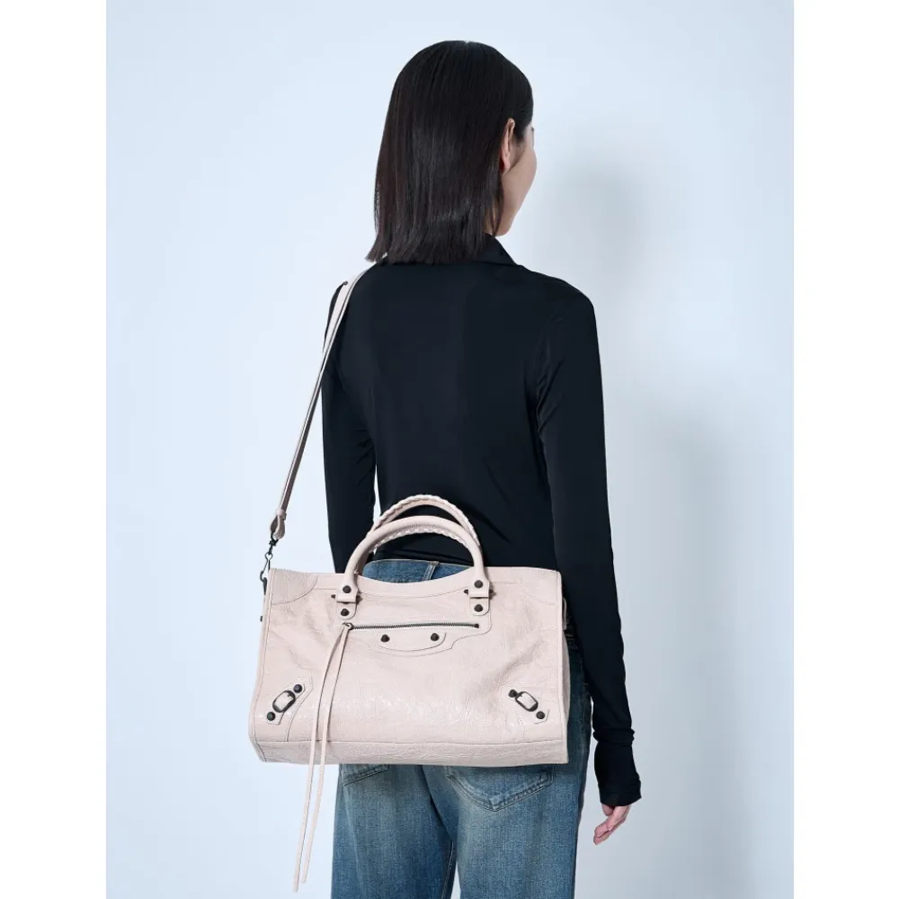 Forkæl dig selv med denne Balenciaga Le City håndtaske i krøllet læder. Designet til den moderne kvinde, denne tote taske har to håndtag, en justerbar og aftagelig skulderrem, lynlåslukning, signatur nitter og flere lommer til dine væsentlige ting. Lavet i Italien af 100% læder.