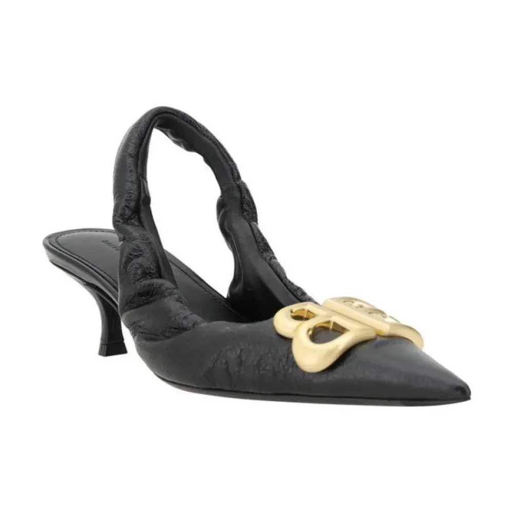 Balenciaga Pumps*Elegant Læder Slingback Kitten Heel Pumps Sort