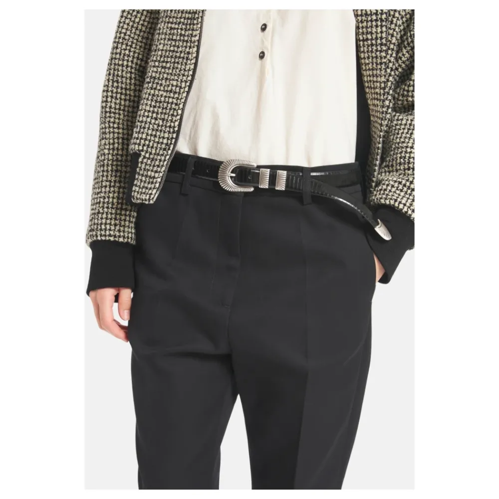 Barena Venezia krokodillepræget læderbælte har tekstureret læder og et sølvfarvet westernspænde, designet til at løfte både afslappede og skræddersyede looks. Nøgleattributter: Sort | Nero | Læder | Spænde lukning | Krokodillepræget tekstur | Western-inspireret spænde | Sølvfarvet hardware | Sammensætning og pleje: Læder | Tør af med en blød klud; behandl med et læderplejeprodukt efter behov. Undgå langvarig udsættelse for vand.