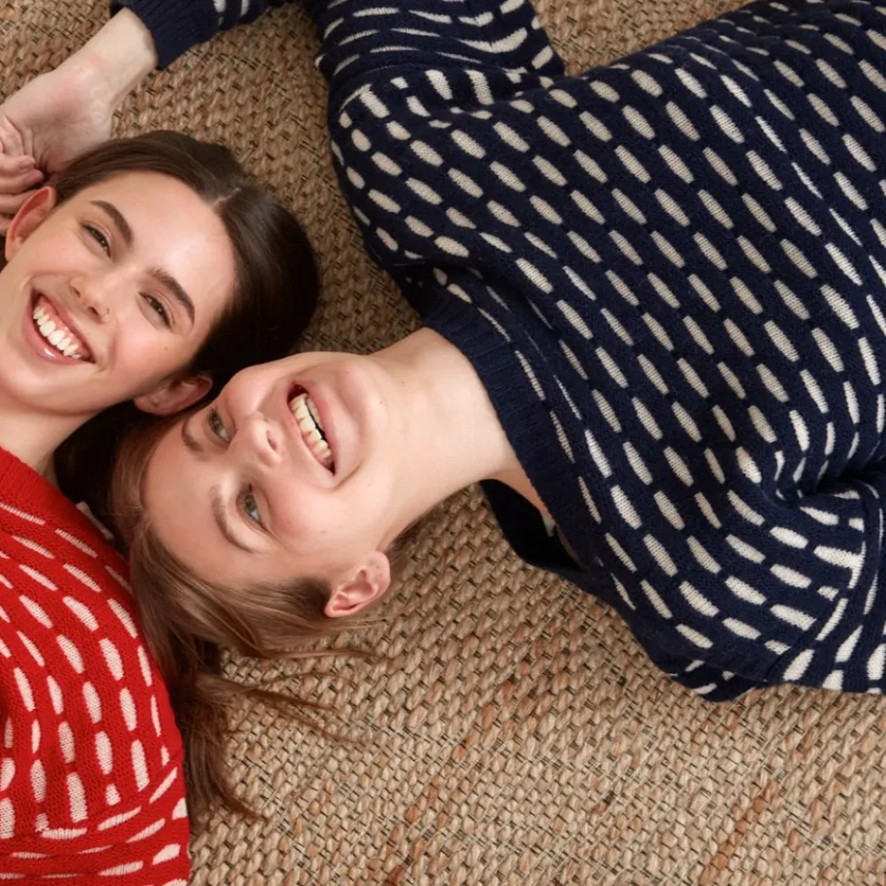 Præsenterer Wava Sweater fra Basic Apparel. Denne super skønne striktrøje til kvinder er lavet af 70% lammeuld og 30% genbrugspolyamid. Den har en flot mørkeblå farve med et mønster i råhvid, ribkanter på ærmer og bund, bådudskæring, ballonærmer og en oversize pasform. Style den over en basic t-shirt og jeans eller som du ønsker det. Findes i størrelserne XS til XXL. Materiale: 70% Lammeuld, 30% Genbrugspolyamid. Vask: Håndvask og tør den fladt på et håndklæde. Husk at følge vaske- og brugsanvisning. Style nr.: BA240-09_644.