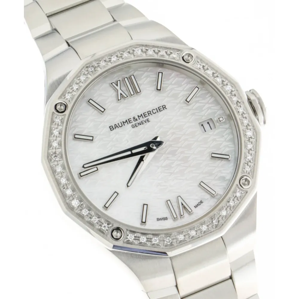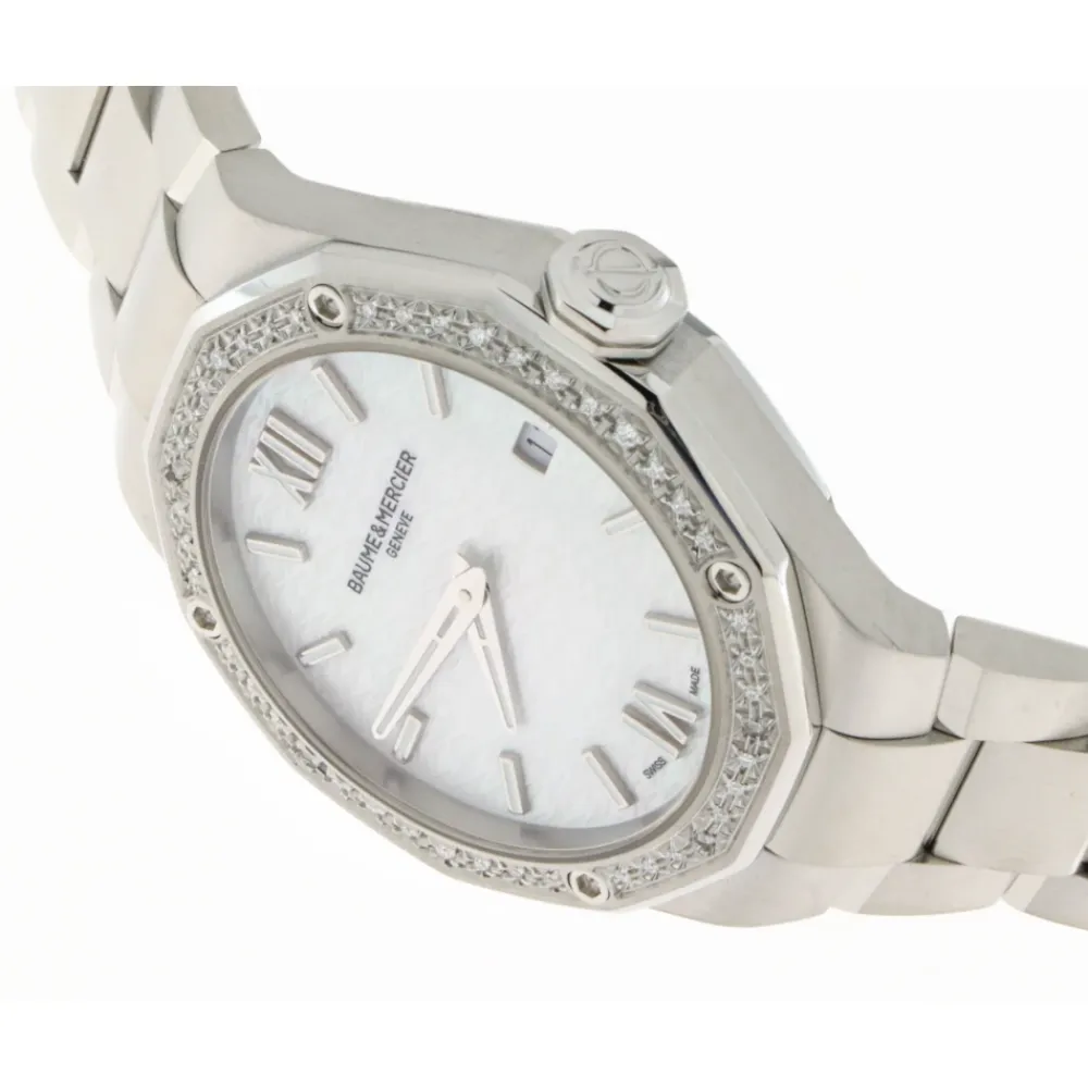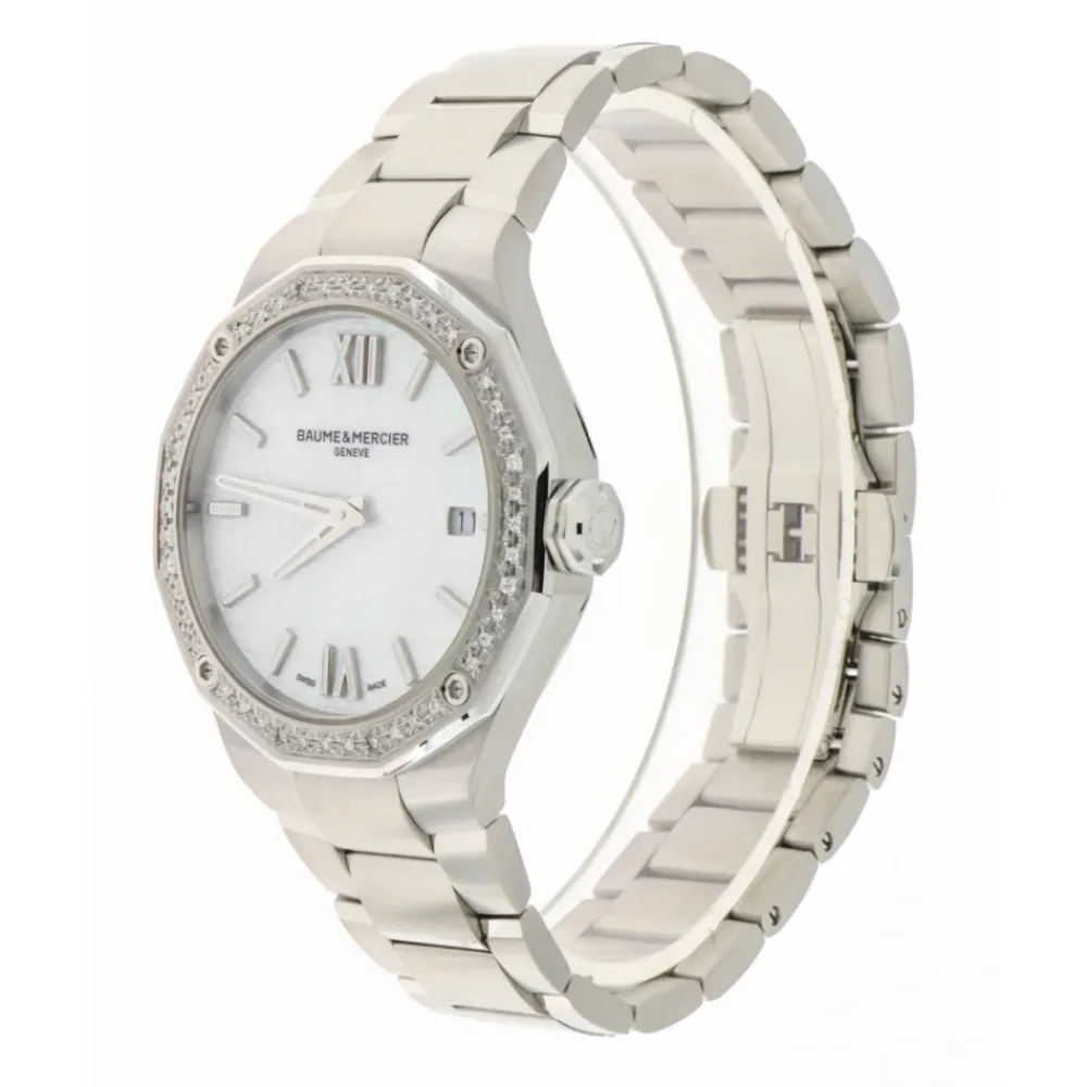 Opdag elegance med Baume et Mercier Women`s Watch, et fantastisk ur designet til den moderne kvinde. Med sit kvartsur, perlemors urskive og rustfrit stål urkasse og armbånd udstråler dette ur sofistikation og stil. Med en diameter på 36 mm og vandtæthed op til 50m er det perfekt til daglig brug, mens safirglas sikrer holdbarhed og ridsefasthed. Forbedr dit tilbehør med dette eksklusive ur fra Baume et Mercier.
