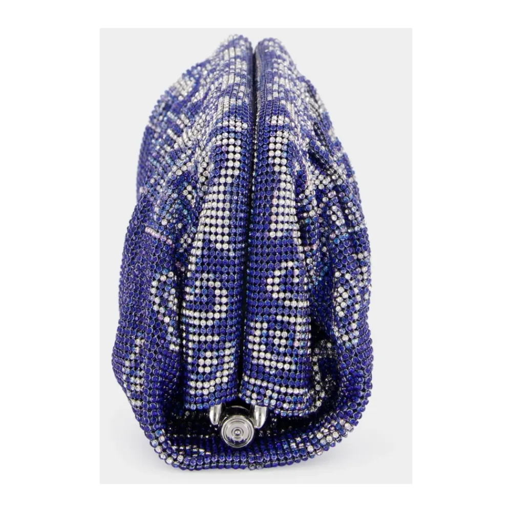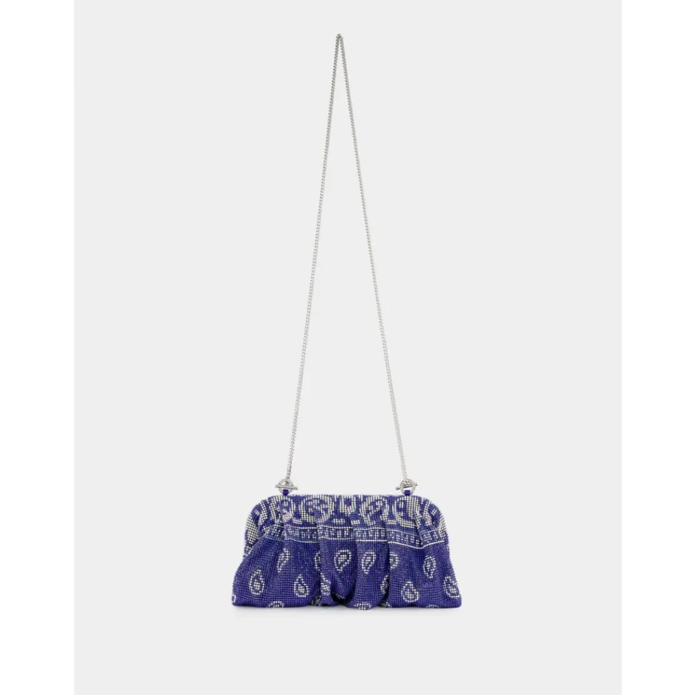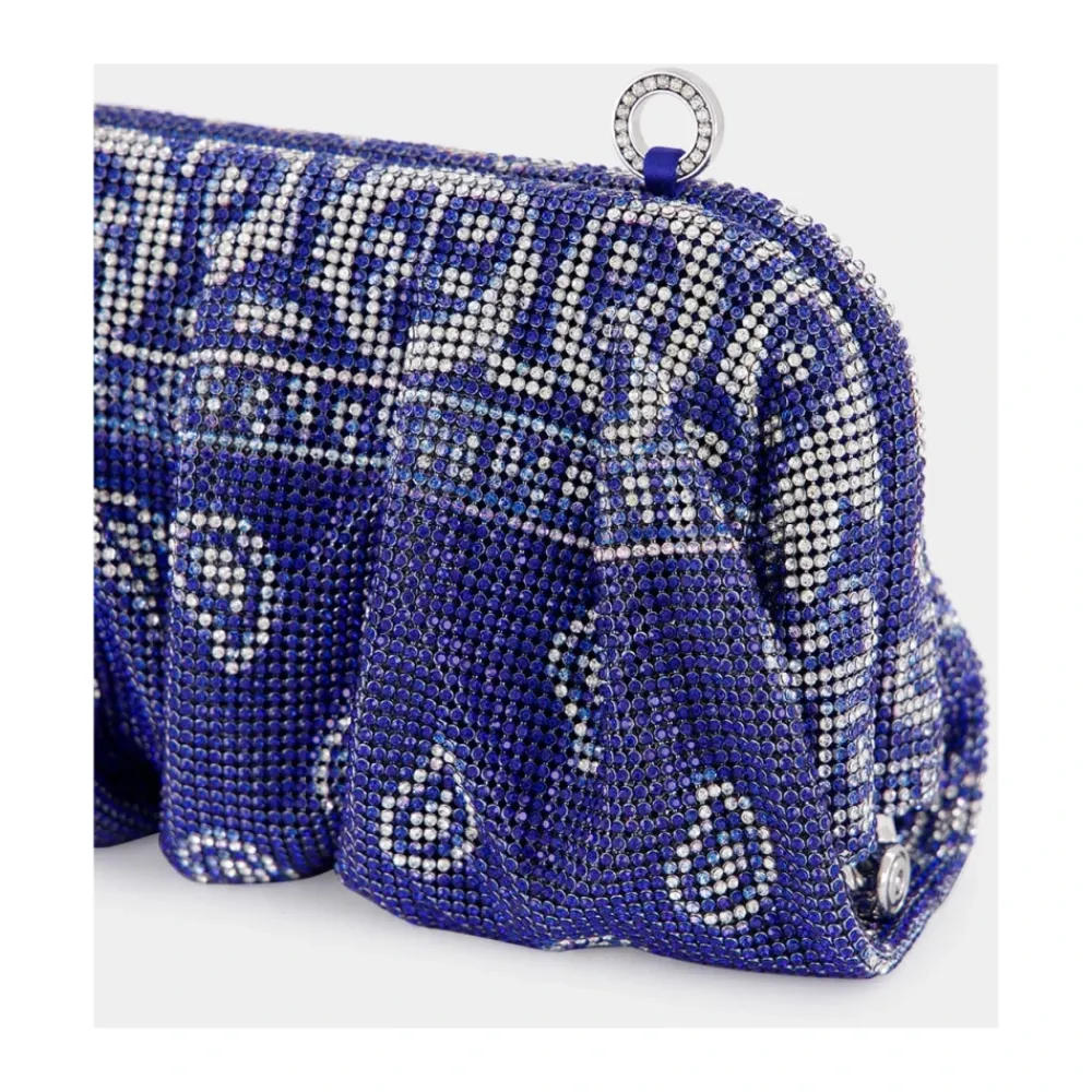 Benedetta Bruzziches Venus La Grande Clutch kombinerer håndsyede krystaller med en skulpturel, slouchy silhuet. Den er designet til aftenbrug og kan nemt bæres i hånden eller over skulderen. Nøgleattributter: Blå | Blå bandana | Messingnet | Aftagelig kæderem | Skulder- eller håndbæring | Indvendig silkepose | Håndsyede krystaller | Paisley-inspireret bandana-mønster | Skulpturelle læg | Slouchy silhuet | Mål og pasform: Højde: 12 cm | Dybde: 5,5 cm | Bredde: 27 cm | Sammensætning og pleje: Ydre: 100% messingnet | Indvendig: 100% silkepose | Tørres af med en blød klud.