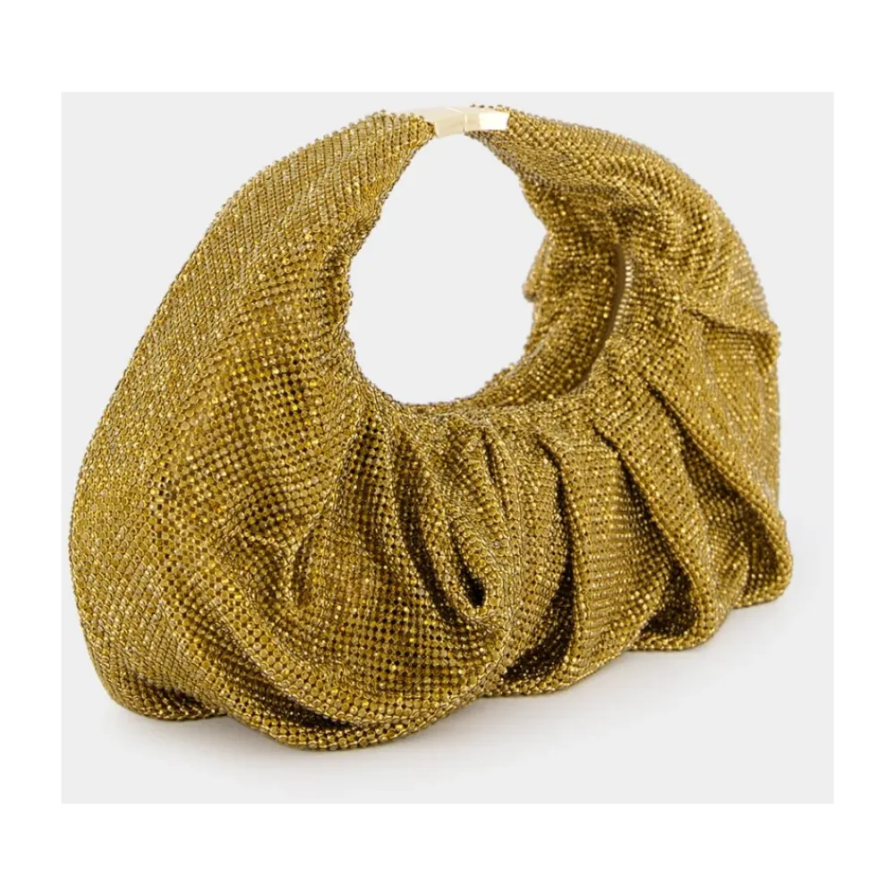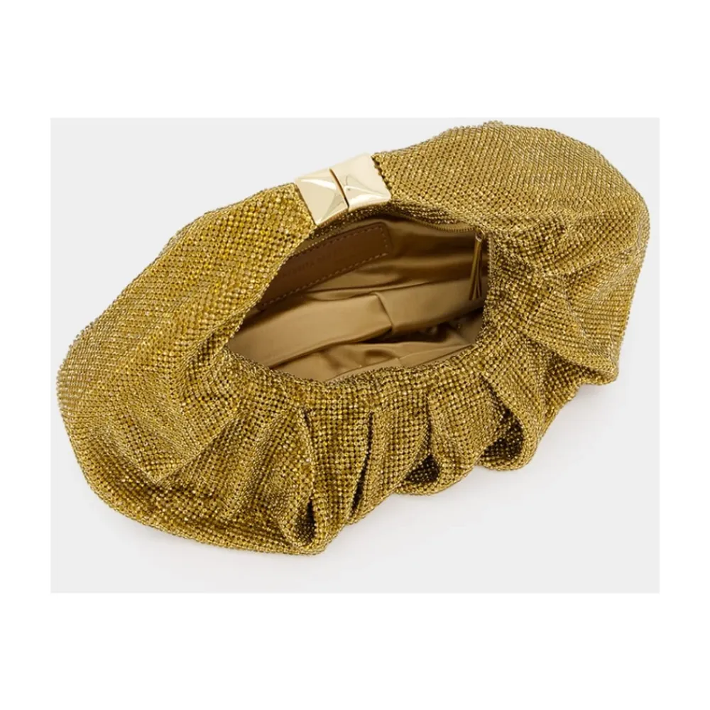 Benedetta Bruzziches Yennefer Sogno D’Estate Skuldertaske kombinerer glitrende gyldent messingnet med en blød silkepose i satin, hvilket giver en skulpturel aften-skuldertaske, der er ideel til særlige lejligheder. Nøgleattributter: Gul | Sogno Destate | Guld | Messingnet | Skulderrem | Indvendig silkepose i satin | Glimtende messingnet | Skulpturelle samlede folder | Silkepose i satin indvendigt | Dimensioner og pasform: H: 24 cm X D: 4 cm X B: 26 cm | Sammensætning og pleje: Udvendigt: 100% Messingnet | Indvendigt: 100% silkepose i satin | Tør af med en blød klud