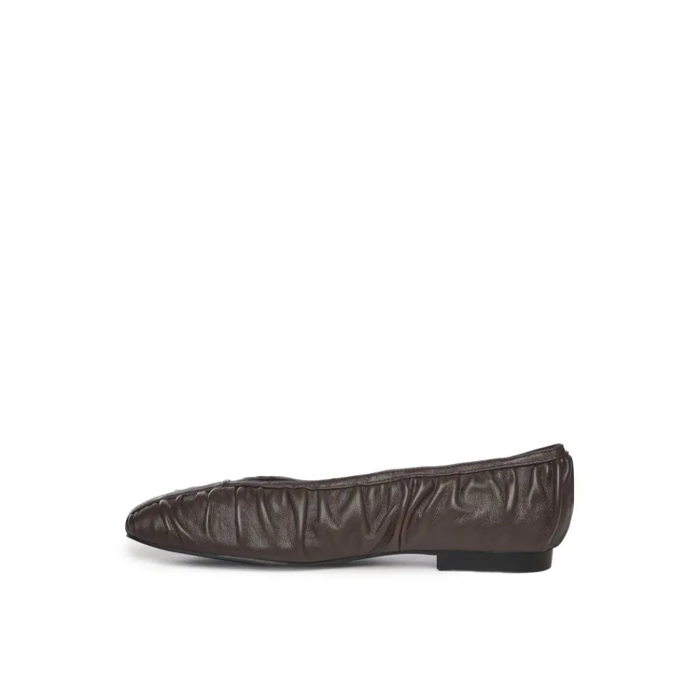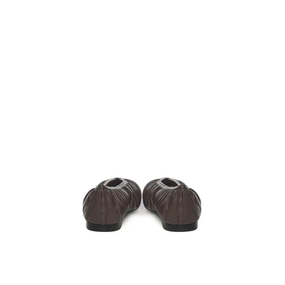 Forkæl dig selv med disse Bibi Lou læderballerinaer i brun. Med en rynket læderdesign, V-skåret vamp, rund tå og en hæl på 1 cm.