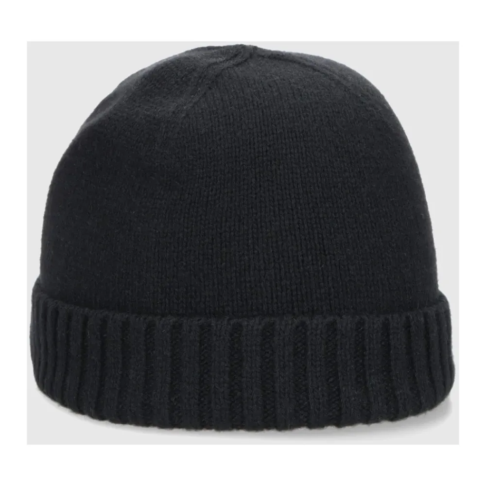 Borsalino Huer & Kasketter*Blød Eco Cashmere Ribbet Manchet Beanie Sort