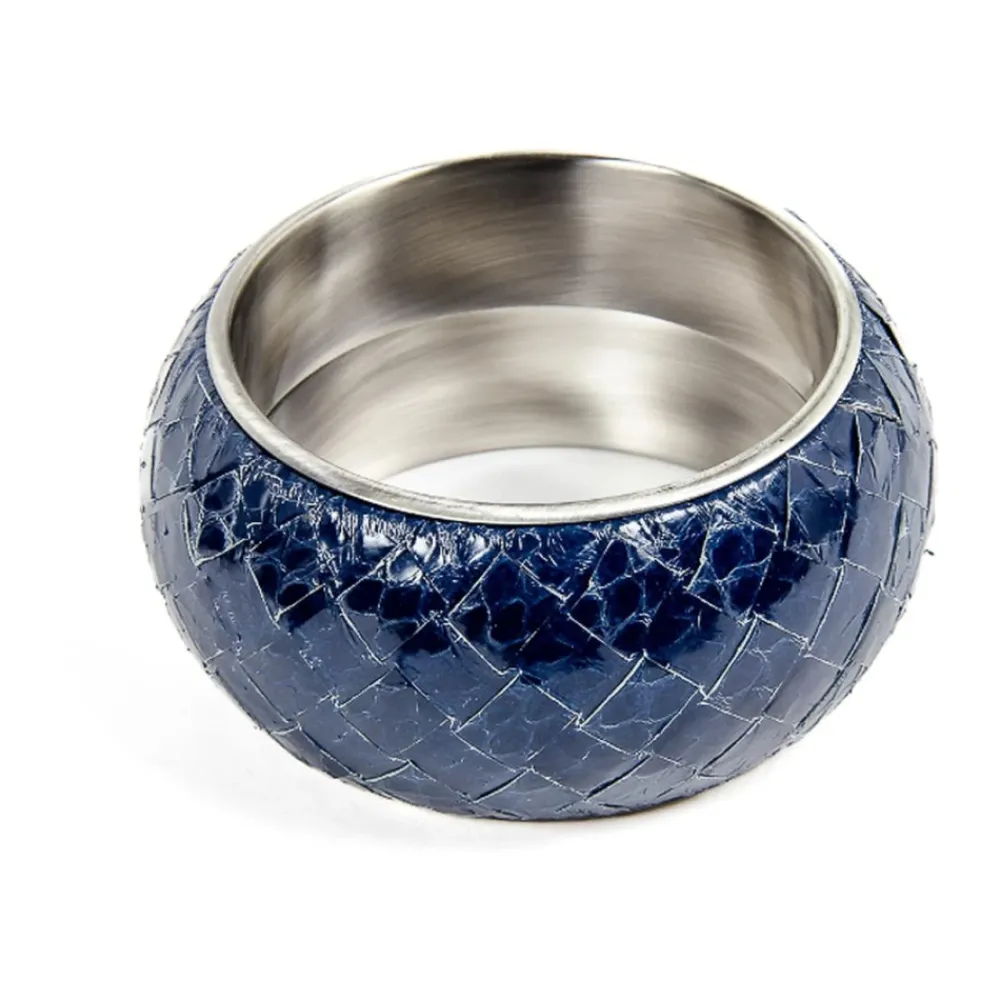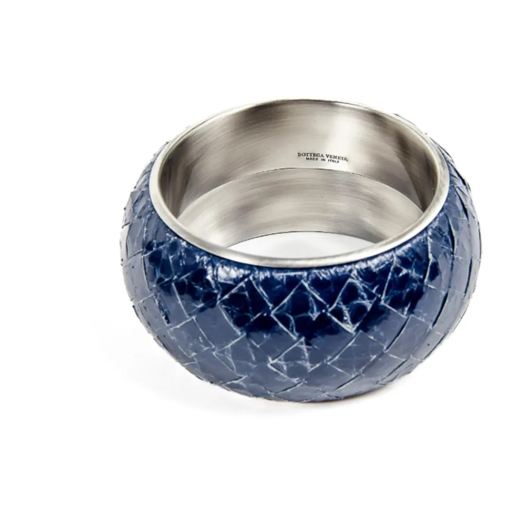 Løft din stil med Bottega Veneta blåt læder- og sølvarmbånd. Dette tilbehør er fremstillet i Italien og kombinerer luksuriøse materialer med en levende blå nuance for at forbedre ethvert outfit. Produkt detaljer: Blå | 50% Sølv | 50% Slangeskindslæder | Sammensætning og pleje: 50% Sølv | 50% Slangeskindslæder