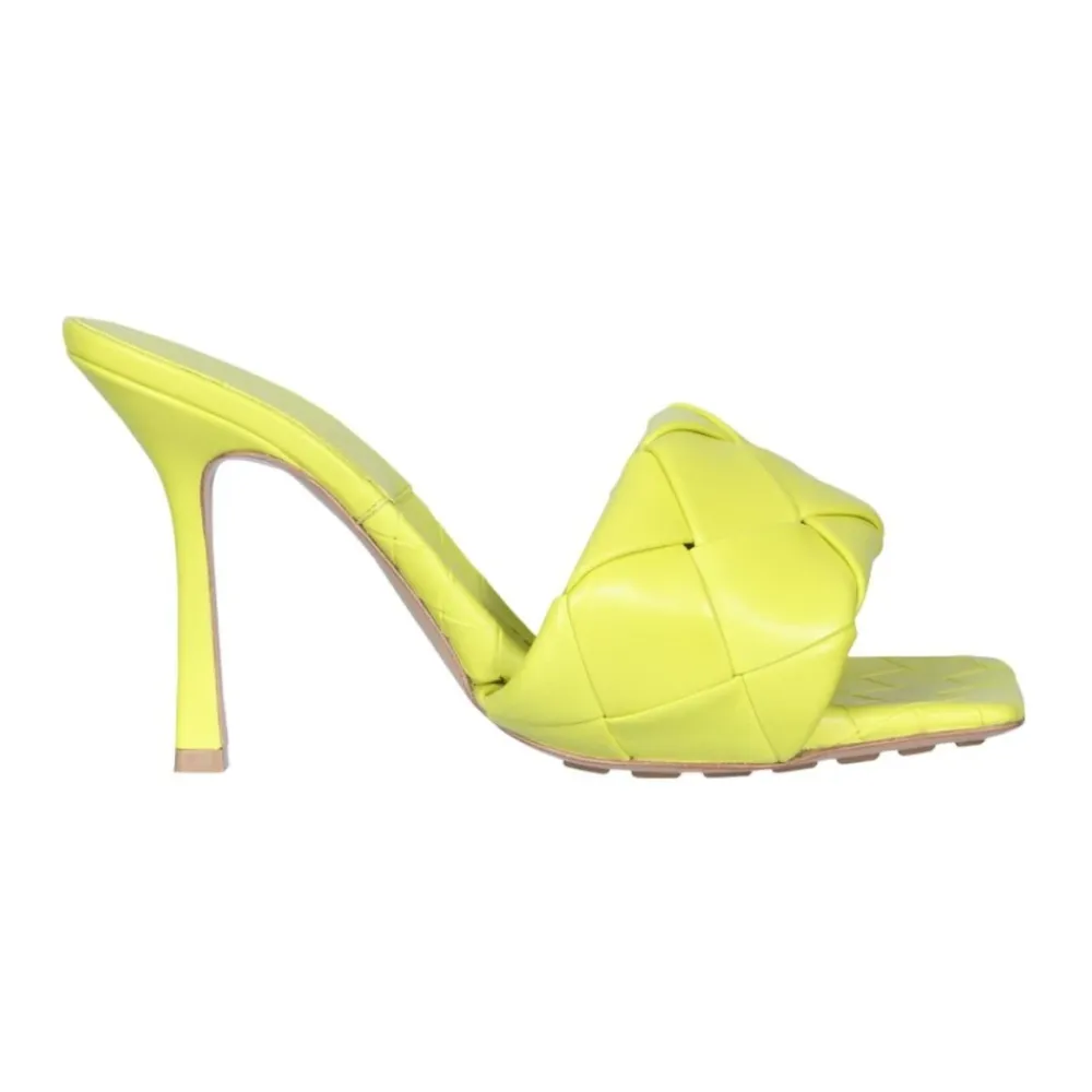Bottega Veneta Stiletter*Lido vævede læder mules med høje hæle Grøn