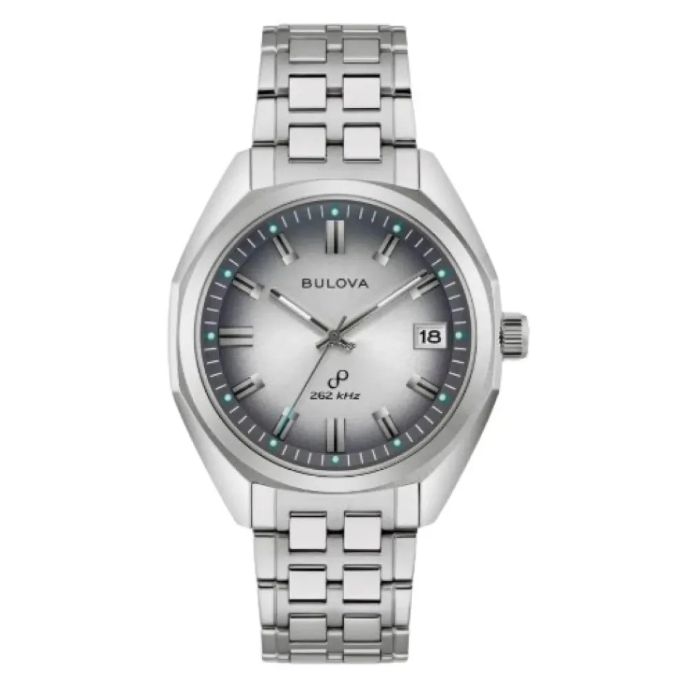 Bulova Jet Star kombinerer et 1970’er-inspireret, kantet urkasse med Bulovas højpræcisions quartz-urværk Precisionist, der leverer præcis tidtagning og et kuppelformet safirglas til hverdagsbrug. Nøgleattributter: Grå | Sølv | Rustfrit stål | Vandafvisende til 50 m (5 ATM) | Precisionist højpræcisions quartz-urværk (262 kHz) | Selvlysende visere og timemarkører | Datovisning ved klokken 3 | Foldelås med trykknapper | Armbånd med låste fjederstænger for nem frigørelse | Kuppelformet safirglas | Kantet 1970’er-inspireret urkasse med brede facetter | Grå urskive med kapitelring og påsatte timemarkører | Dimensioner & pasform: Urkassediameter: 40 mm | Rembredde: 20 mm | Sammensætning & pleje: Rustfrit stål | Safirglas | Rengør med en blød, tør klud; undgå kontakt med kemikalier og længerevarende udsættelse for vand; få armbåndsjusteringer og service udført af en professionel.
