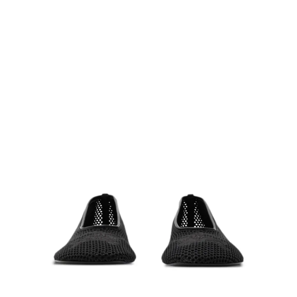 Løft din stil med Burberrys Mesh Ballerina Sko, der har et elegant stretch-design og det ikoniske rytterridermotiv. Produkt detaljer: Sort | Mesh med læderkant | Slip-on stil | Firkantet tå | Broderet EKD detalje | Dimensioner og pasform: Almindelig pasform | Sammensætning og pleje: Mesh | Læder | Ikke specificeret