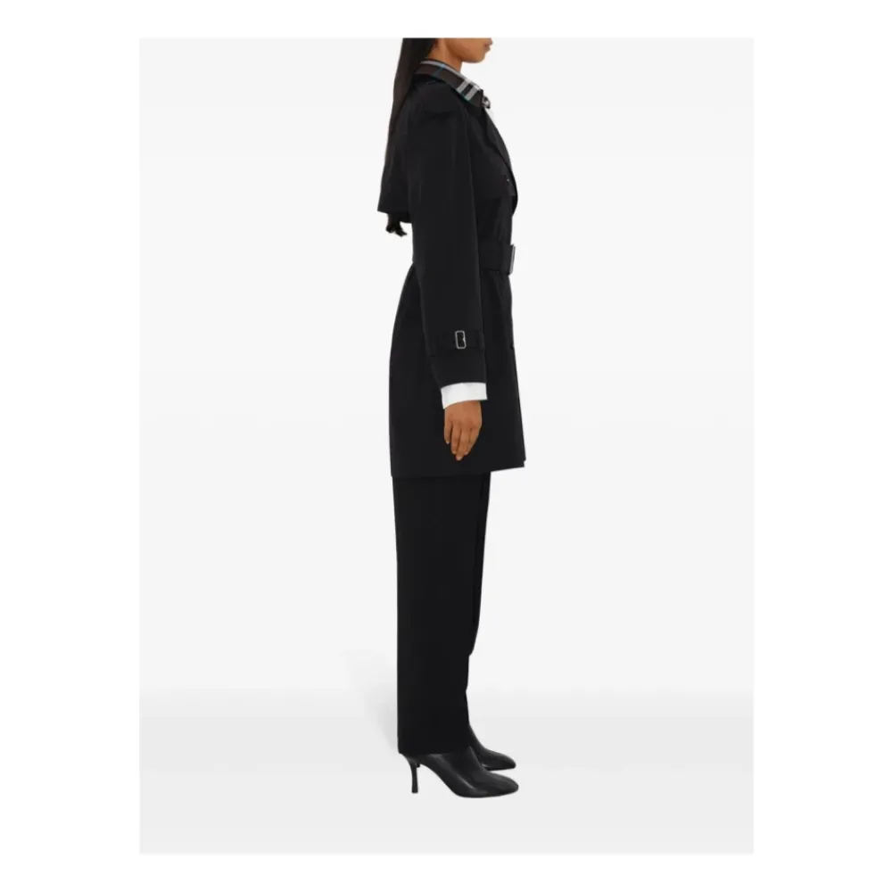 Opgrader din stil med denne sorte bomuldstrenchcoat fra Burberry, der har et klassisk ternet mønster og et alsidigt design. Perfekt til at tilføje et tidløst touch til enhver garderobe. Produkt detaljer: Sort | Bomuldsgabardine | Aftagelig krave | Dobbeltknappet lukning | Bælte ved ærmer og talje | Brede revers | Ternet mønster | To paspolerede sidelommer | Amerikansk slids bagpå | Ternet foring | Dimensioner og pasform: Regular fit | Sammensætning og pleje: 100% Bomuld | Renseri anbefales
