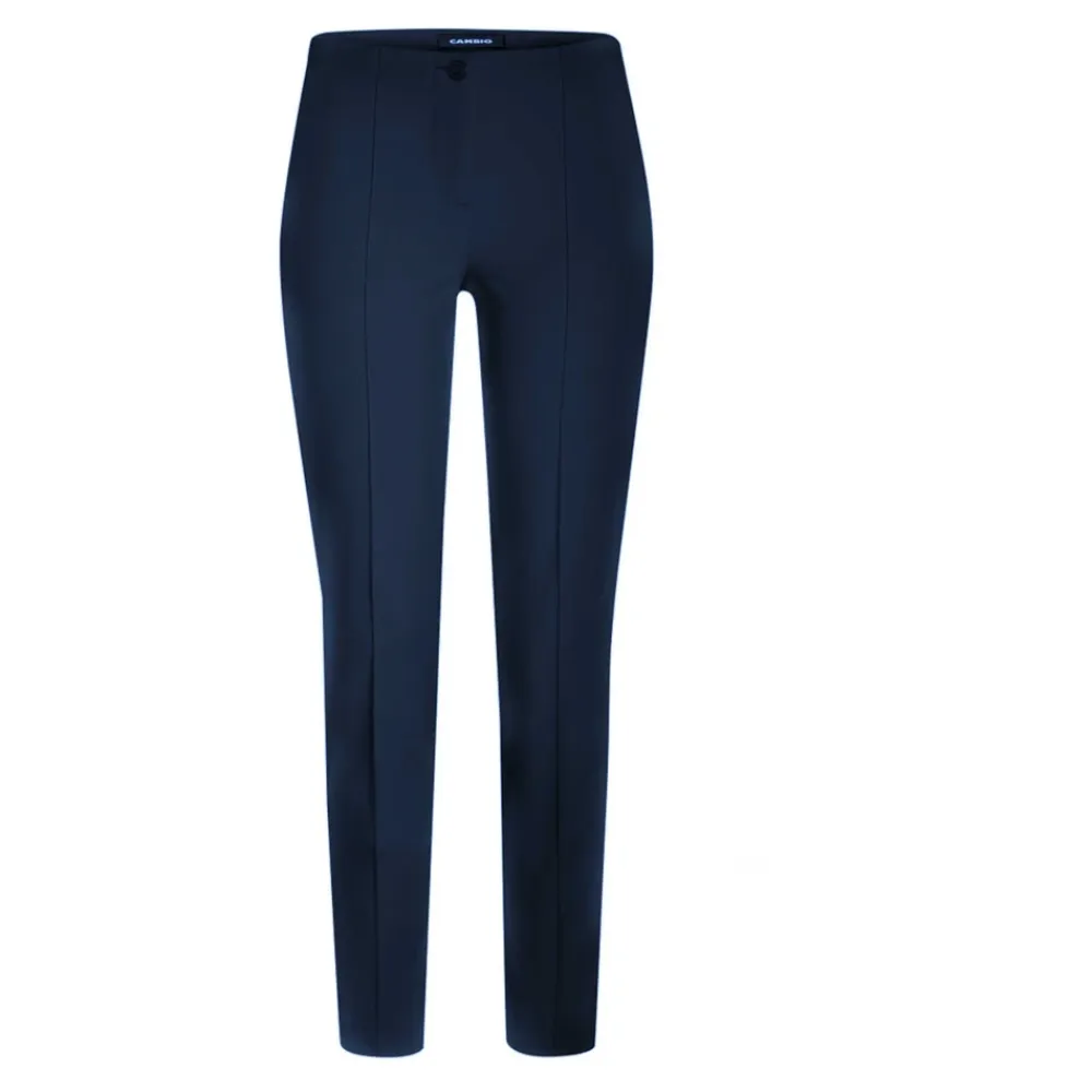 Hold dig stilfuld og komfortabel i disse slim-fit bukser fra Cambio. Med høj talje, smalle ben og elastik i taljen er disse bukser designet til at fremhæve din figur. Dekorative syninger langs lår og ben tilføjer en slankende effekt. Perfekte at kombinere med både korte og lange toppe. Model: ROS 0202 00 6111 Navy. Kvalitet: 92% polyamid, 8% elastan. Vask ved 30 grader.