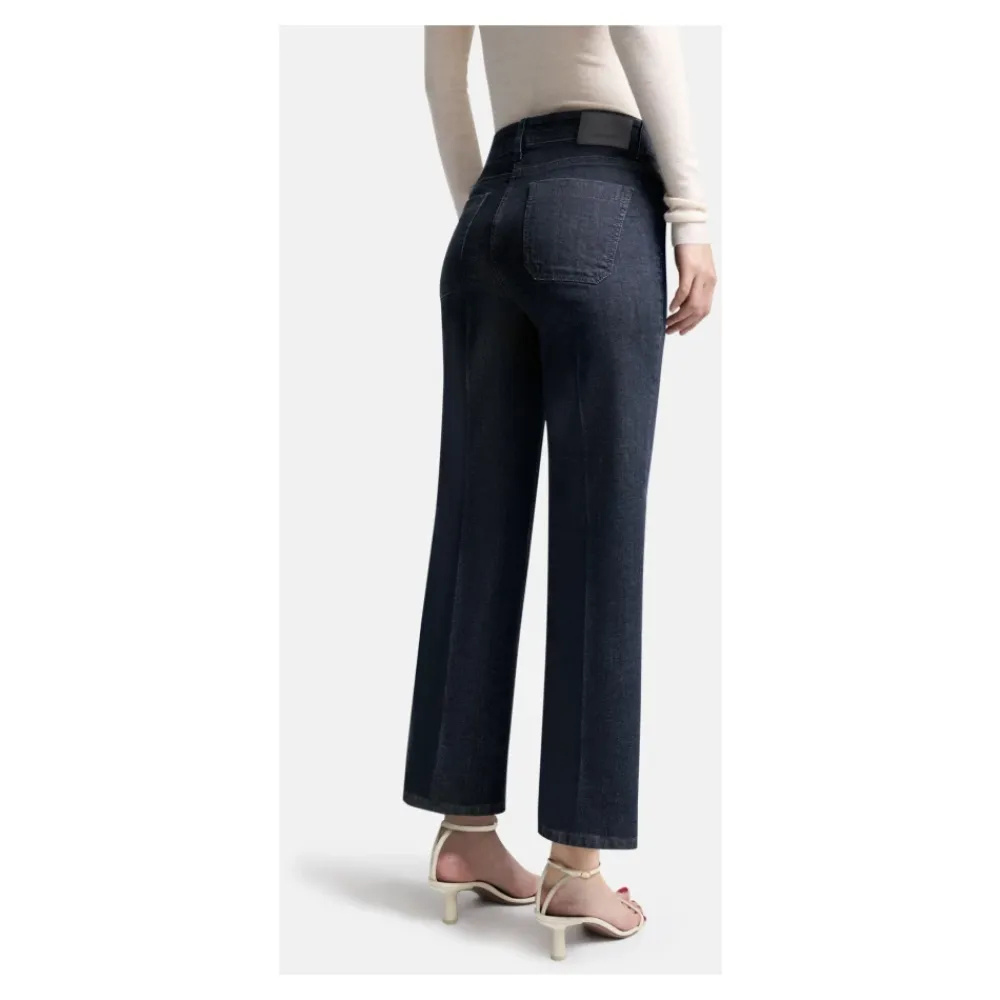 CAMBIO Wide Leg Denim TESS WIDE LEG fuldlængde bukser. Den blå denim er meget behagelig at have på og bevarer sin form selv efter lang tids brug. Ideel til subtile slibninger og slidte effekter, perfekt til feminine og reducerede vaske. Findes i forskellige vaske. Mørkeblå stretch denim vidde bukser med 93% bomuld, 5% polyester, 2% elastan. PLEJEANVISNINGER: Maskinvask kold, må ikke bleges, må ikke tørretumbles, stryg ved lav temperatur, rens med perchlorethylen.