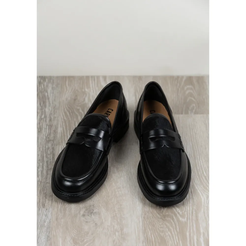 Carmens Libra Combi er en lavprofil loafer i kalveskind, designet til et poleret hverdagslook. Den skiller sig ud med en vamp dekoreret med detaljer i ponyhår og en hæl på 1 cm. Vigtigste egenskaber: Sort | Kalveskindslæder | Blødt kidlæderfor | Vamp dekoreret med detaljer i ponyhår | Lav 1 cm hæl | Mål & pasform: Hælhøjde: 1 cm | Sammensætning & pleje: Kalveskindslæder (overdel) | Blødt kidlæder (for) | Latex (sål)