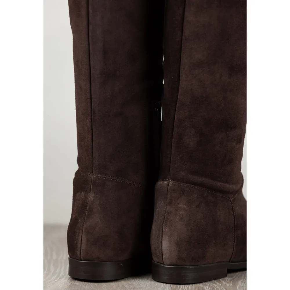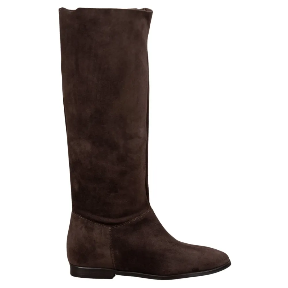 Carmens Peter Fold er en høj støvle, der er defineret af en slank silhuet og en blød overdel i ruskind. Den er designet til raffineret hverdagsbrug og smarte, afslappede looks. Vigtigste egenskaber: Brun | Moro | Ruskind | Mikrofiberforing | TPU-sål | Høj støvle | Slank silhuet | Dimensioner og pasform: Hælhøjde: 1 cm | Sammensætning og pleje: Pelle di capretto scamosciata | Microfibra | TPU