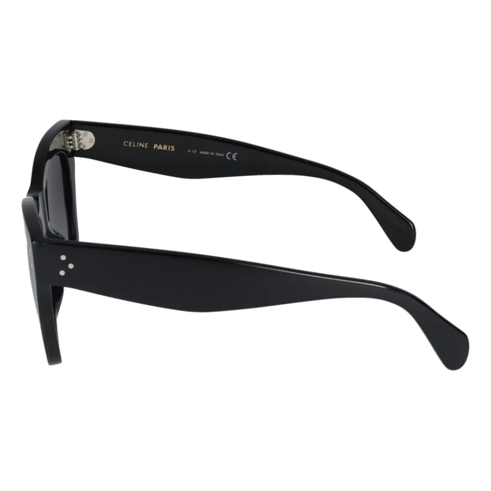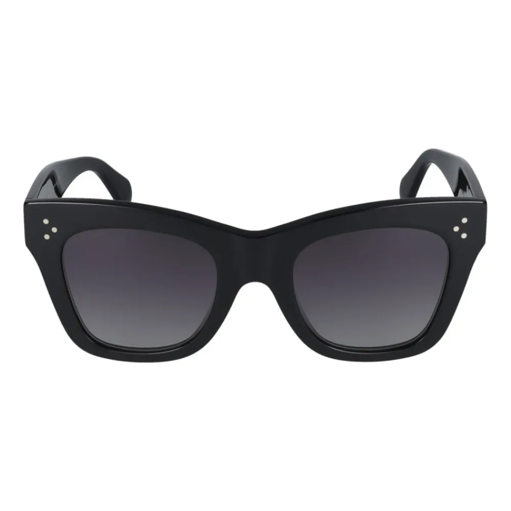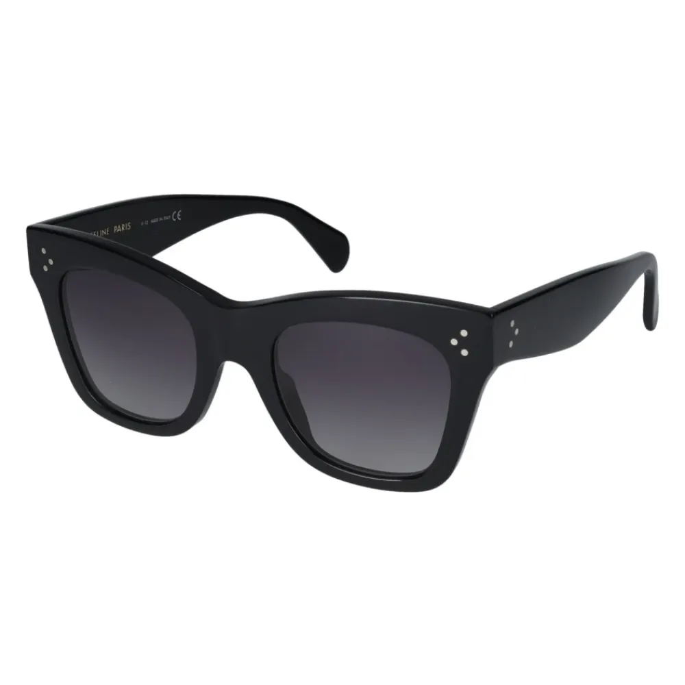 Forstærk din stil med disse sorte Celine solbriller med katteøjede stel lavet af acetat. De grå polariserede linser giver 100% UV-beskyttelse, mens de signatur tre prikker på fronten og tindingerne tilføjer et strejf af elegance. Linsebredde: 50 mm; Næsebroens længde: 22 mm; Tindingelængde: 150 mm.