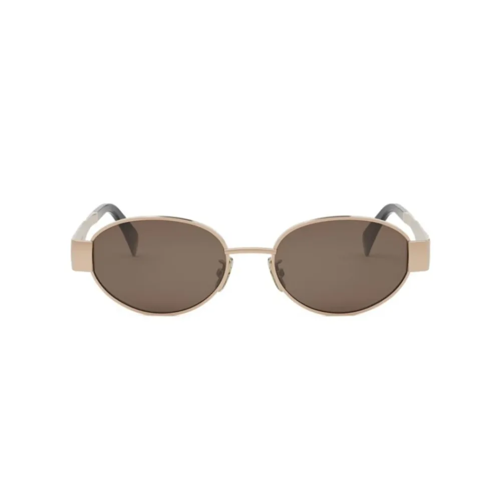 Forkæl dig selv med disse Celine ‘Triomphe 01’ solbriller med en rosaguld metalramme og ovale linser med brunt skær. Beskyt dig mod UVA og UVB-stråler. Prydet med det ikoniske Triomphe-logo på stængerne. Linsebredde: 54 mm; Næsebroens længde: 18 mm; Stængernes længde: 135 mm.