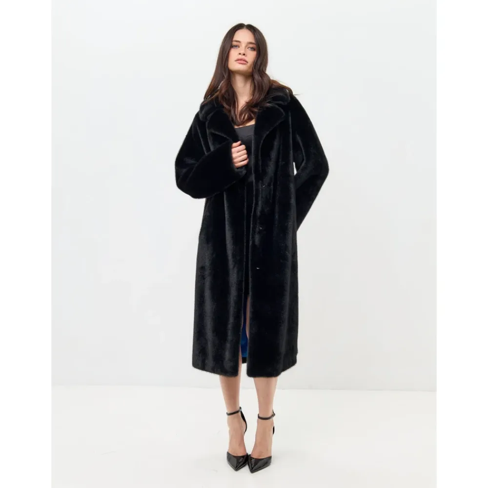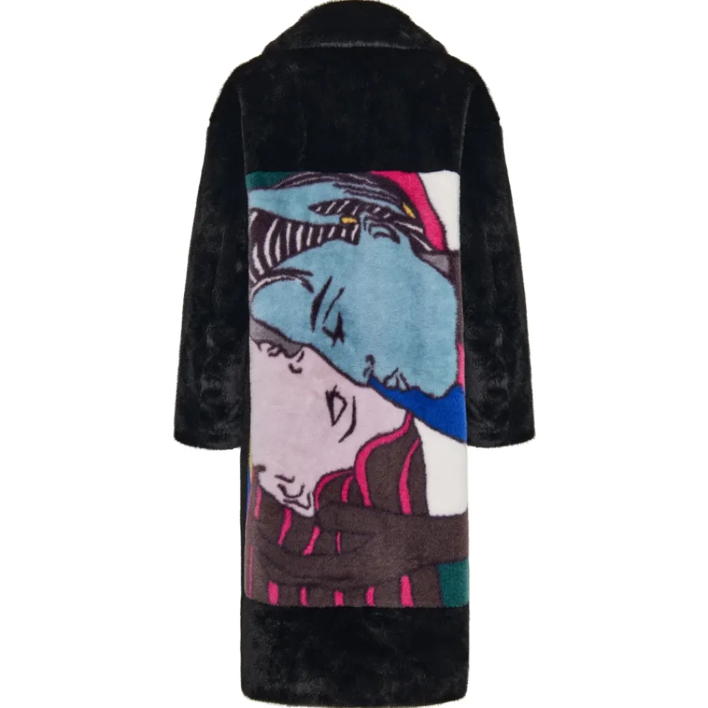 Skil dig ud med stil med Deluxe Lang Rygprint Frakke Lovers fra Cesare Gaspari. Denne frakke kombinerer materialer af høj kvalitet med et unikt rygprint design, der sikrer varme og et markant look. Produkt detaljer: Sort | 43% Modakryl | 36% Polyester | 21% Akryl | Reverskrave | Rygprint | Længde til læggen | Hægtelukning | Dimensioner og pasform: Modellen er iført størrelse S | Sammensætning og pleje: 43% Modakryl | 36% Polyester | 21% Akryl