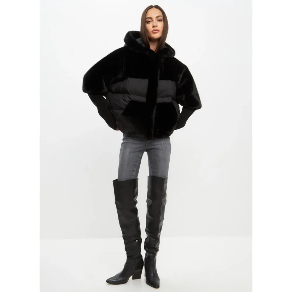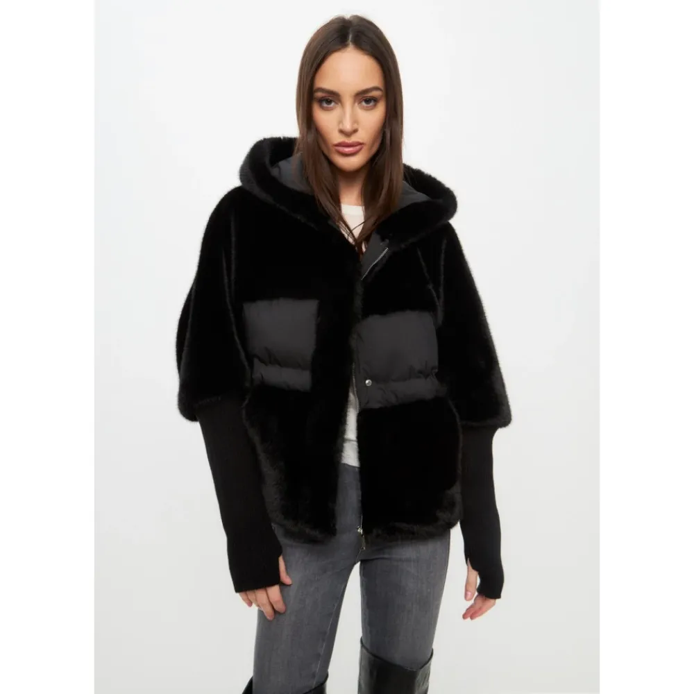 Oplev den luksuriøse blødhed af den Oversized Faux Fur Jakke, der har en plysset tekstur og et rigt stof for en behagelig pasform. Dens strikærmer og bløde hætte gør den perfekt til enhver lejlighed. Produkt detaljer: Sort | Faux Fur | Strikærmer | Blød hætte | Dimensioner og pasform: Oversized pasform | Sammensætning og pleje: Yderstof: 65% polyester, 35% uld | Bunddel: 100% polyester | Indsats: 65% polyester, 35% uld | Fyld: 50% dun, 50% polyester | For: 100% polyester