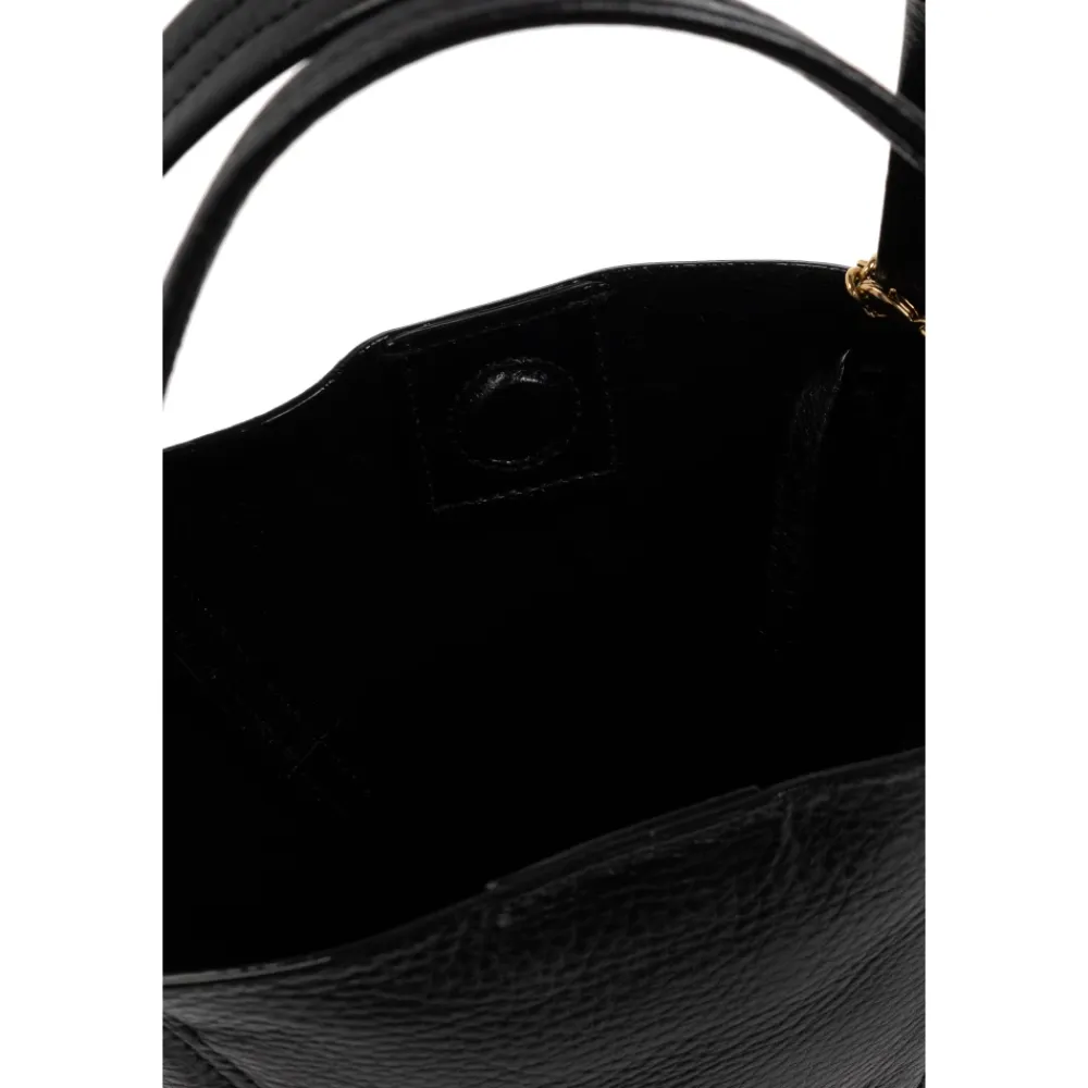Vi præsenterer Spin-håndtasken fra Chloé, en luksuriøs bucket bag, der kombinerer elegance og funktionalitet med sin rektangulære, let afrundede form. Produkt detaljer: Sort | Tekstureret læder | Lang skulderrem | To kortere hanke | Diskret guld Chloé-logo | Guldkæde med charms | Dimensioner og pasform: Højde: 29 cm | Bredde på det bredeste punkt: 21 cm | Bundbredde: 8 cm |