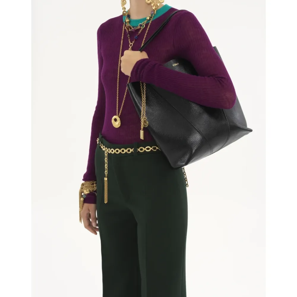Chloé Indkøbstasker*læderhåndtaske med kædehanke Sort
