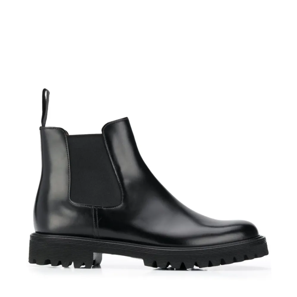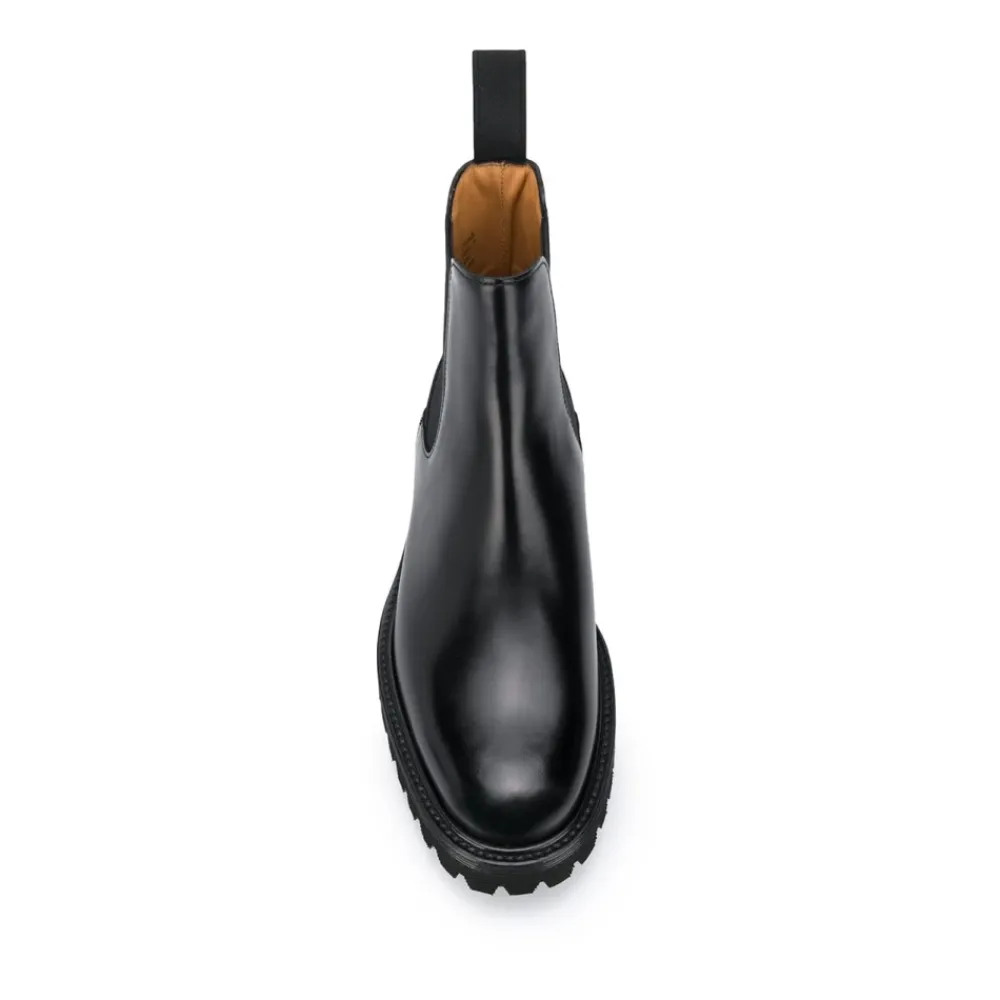 Church`s støvler sorte sorte læder Charlize Chelsea-støvler fra Church`s med mandel tå, elaske sidepaneler, pull-fane ved hælen og den chunky gummisål.Denne beskrivelse er automatisk oversat.