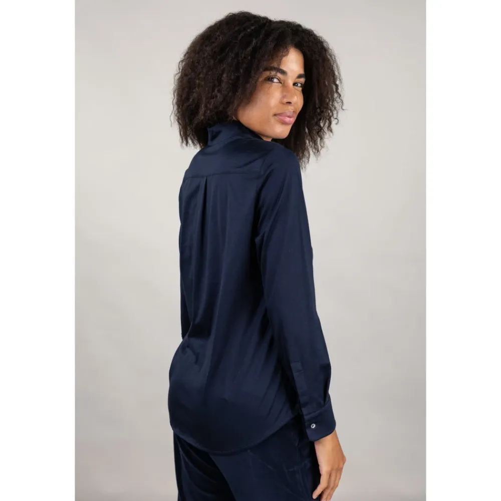 Circolo 1901 skjorte i premium jersey. En alsidig jerseyskjorte med en skjult knaplukning, velegnet til smart-casual beklædning. Nøgleattributter: Blå | Blu navy | Bomuld | Skjult syv-knapslukning | Knapmanchetter | Spread-krave | Lange ærmer | Buet bagkant | Premium jersey finish | Dimensioner og pasform: Skjortelængde 69,5 cm (IT størrelse M) | Regular fit | Sammensætning og pleje: 100% Bomuld