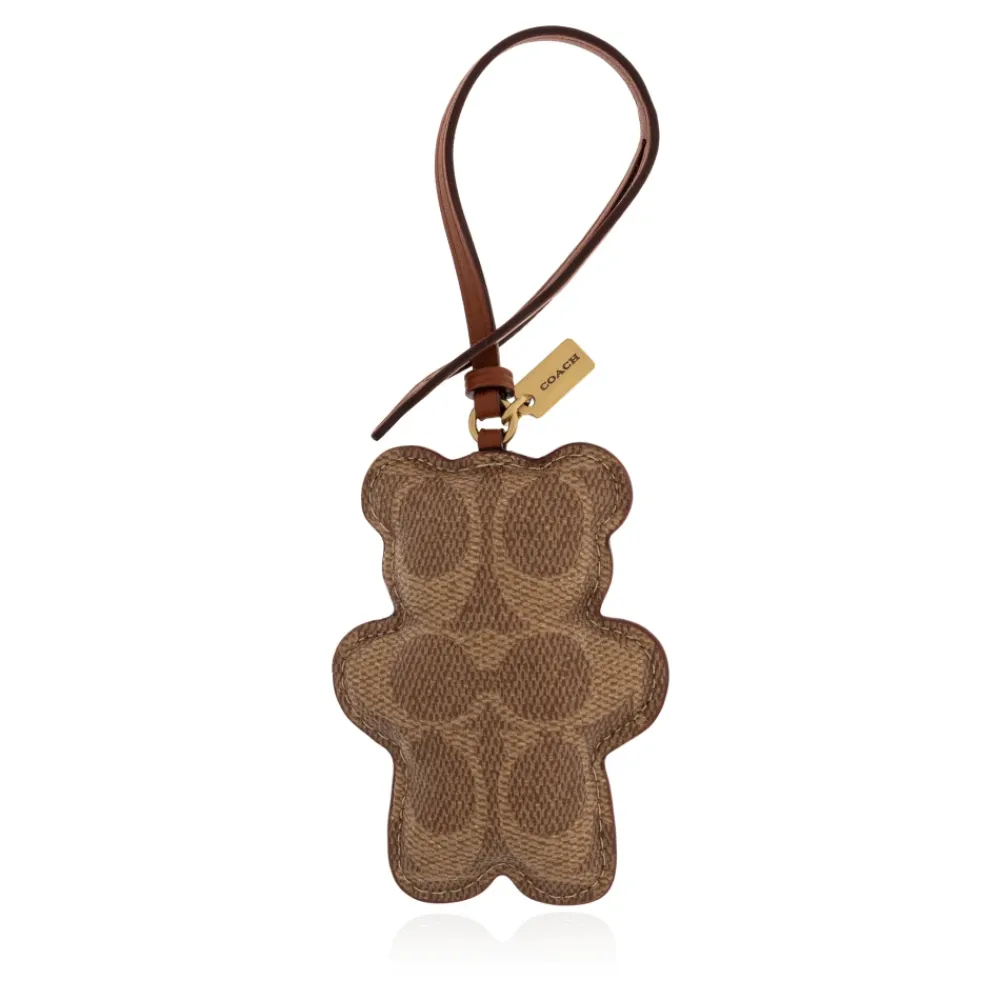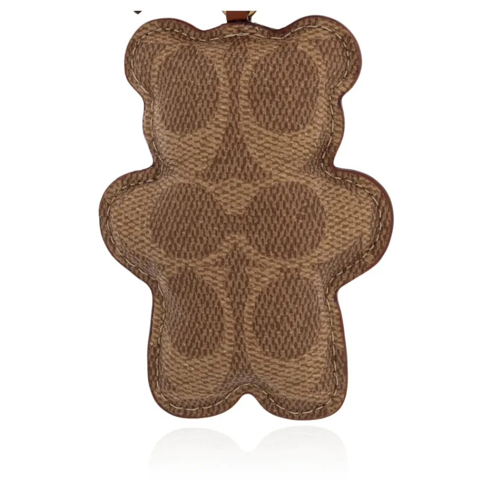 Coach Bear Puffy Taskevedhæng bringer en legesyg, signatur-canvas teddy silhuet til håndtasker, fremhævet af en sammenflettet monogram overflade og en diskret guldgraveret logoplade. Nøgleattributter: Brun | Signatur-canvas | Slank lædertekstureret rem | Sammenflettet monogrammotiv på overfladen | Diskret guldplade med indgraveret Coach-logo | Præcis kantsyning | Blød, proportional bjørnesilhuet | Sammensætning & pleje: Signatur-canvas