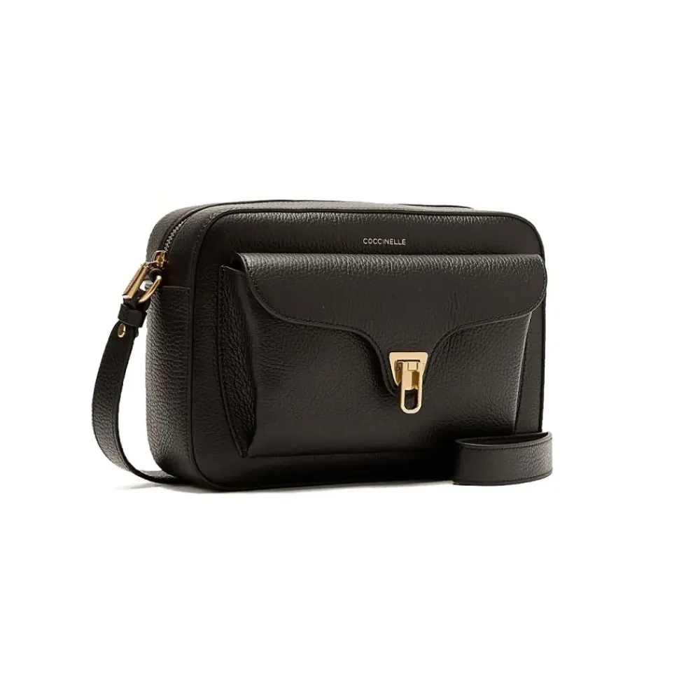 Coccinelle Beat Soft Large er en kompakt crossbody kamerataske i læder, designet til hverdagsbrug. Den udmærker sig ved sin ikoniske plekterformede lukning og en justerbar læder skulderrem for håndfri bekvemmelighed. Vigtige egenskaber: Sort | Nero | Kornet læder | Slidstærkt, let at rengøre læder | Blød, tumlet finish | Lynlåslukning | Forlomme med klap og plekterlukning | Justerbar skulderrem i læder | Indvendig lynlåslomme | Plekterformet metallukning | Rektangulær kamerataske silhuet | Old Gold hardware | Guldstemplet logo | Dimensioner og pasform: 25x18x8 cm | Sammensætning og pleje: 100% okselæder | Tør af med en blød klud; undgå skrappe rengøringsmidler eller desinficerende geler, der kan beskadige hardware eller læder.