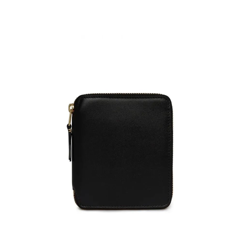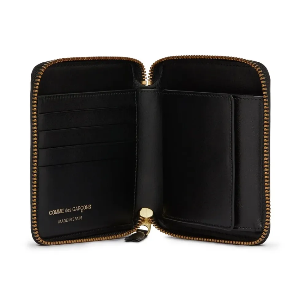 Comme des Garçons Punge & Kortholder*Klisk Læderpung med Guld-Tone Lynlås Sort