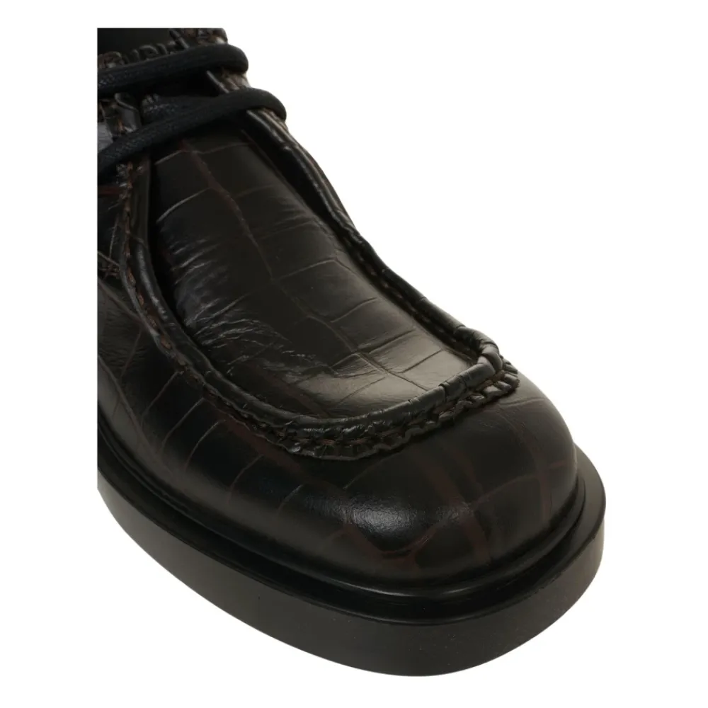 Copenhagen Studios’ CPH446 Snøresko kombinerer en croco-præget læderoverdel med en robust blokhæl for et poleret og støttende look. Ideel til outfits, der har brug for en tekstureret statement-sko, der er pålidelig til hverdagsbrug. Vigtige egenskaber: Brun | Marrone | Læder | Snørelukning | Polstret, udtagelig læderindersål | Gummiydersål for godt greb | Croco-præget tekstur | Rund snude | Bred blokhæl | Syet kantdetalje | Chunky profilsål | Sammensætning & pleje: Læder (overdel) | Læder (for og indersål) | Gummi (sål)