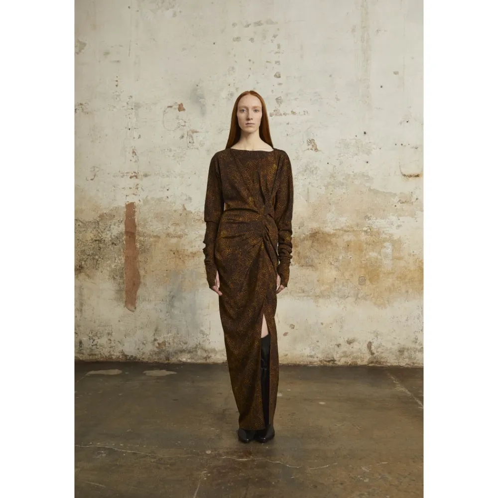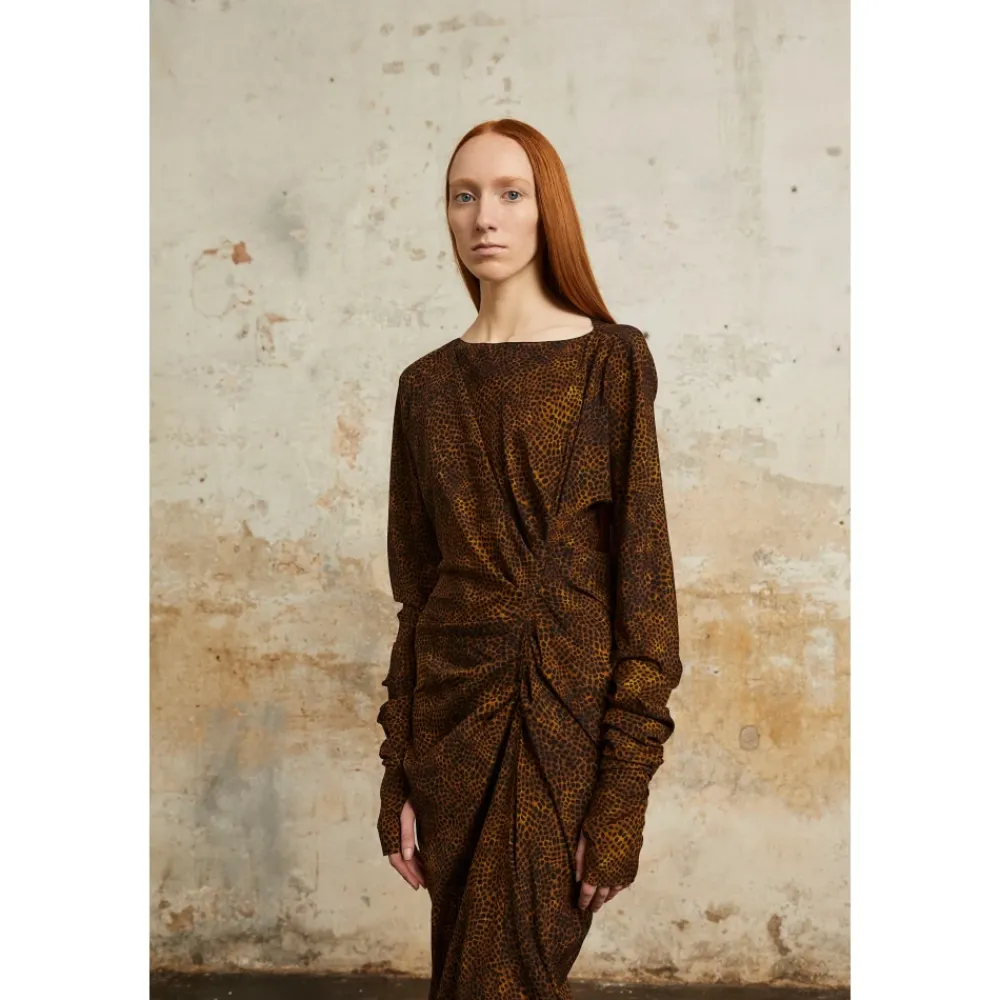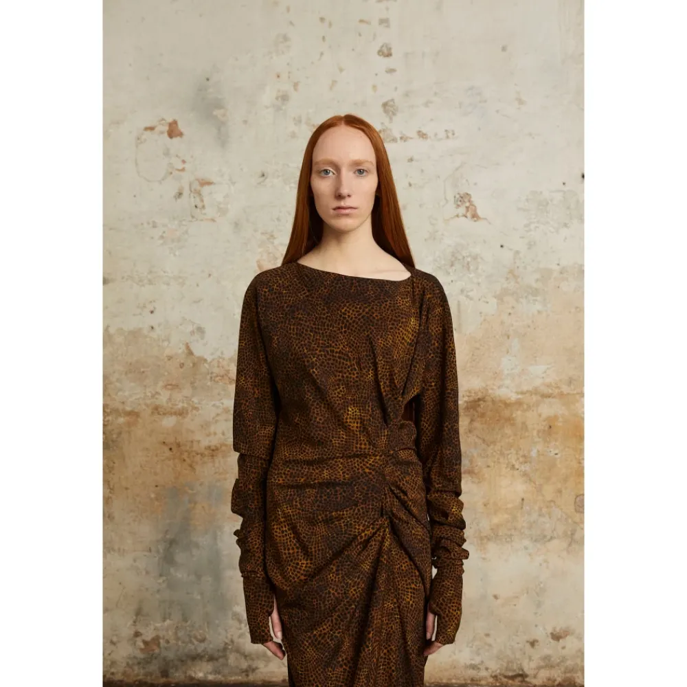 Oplev de luksuriøse silkehandsker med dyreprint fra Cortana, designet til at komplementere Carey-kjolen perfekt. Disse handsker har et unikt vandfarveinspireret print af Cortanas kreative direktør. Produkt detaljer: Chokolade | Brun | Silke | Dyreprint inspireret af vandfarve | Passer til Carey-kjolen | Sammensætning og pleje: 94% Silke | Renseri anbefales