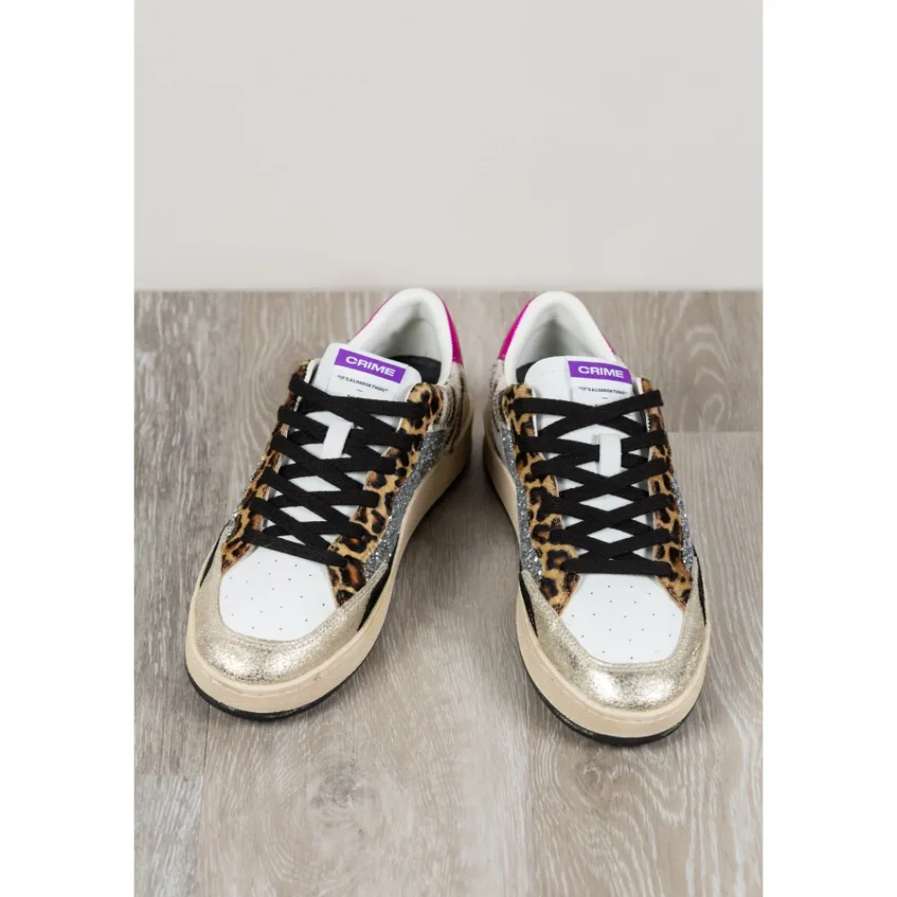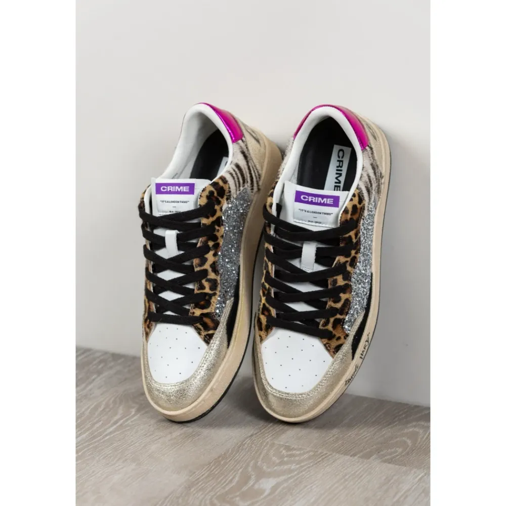 Crime London Chelsea sneaker, der kombinerer sølvglitter og kalvehair med animalier-print med metalliske hældetaljer for en dristig hverdagssneaker med vintage-effekt. Vigtigste egenskaber: Multicolor | Bianco | Animalier | Læder | Snørelukning | Læder- og tekstilfor | Gummisål | Overdel i sølvglitter | Leopard kalvehair-detaljer | Zebra kalvehair-indsats | Hindbærfarvet metallisk hælstrop | Guld krakeleret hæl med CRIME-logo | Hvid læderpløs med logo-stofmærke | Vintage finish | Mål og pasform: Sålhøjde: 2,5 – 3 cm | Almindelig pasform | Sammensætning og pleje: Overdel: glitter, kalvehair, læder | For: læder, tekstil | Sål: gummi | Snørebånd: bomuld