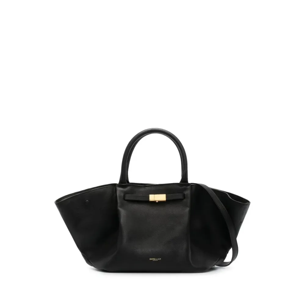 DeMellier Tote Bag er en struktureret tote taske i kalveskind, designet til hverdagsbrug. Den har guldfarvet logo bogstaver og tilbyder både hånd- og skulderbæremuligheder. Nøgleattributter: Sort | Kalveskind | To tophåndtag | Enkelt skulderrem | Hovedrum | Guldfarvet logo bogstaver | Dimensioner og pasform: Dybde: 15,0 centimeter | Håndtag: 10,0 centimeter | Højde: 19,0 centimeter | Rem: 49,0 centimeter | Bredde: 48,0 centimeter | Sammensætning og pleje: Kalveskind | Guldfarvet metal hardware