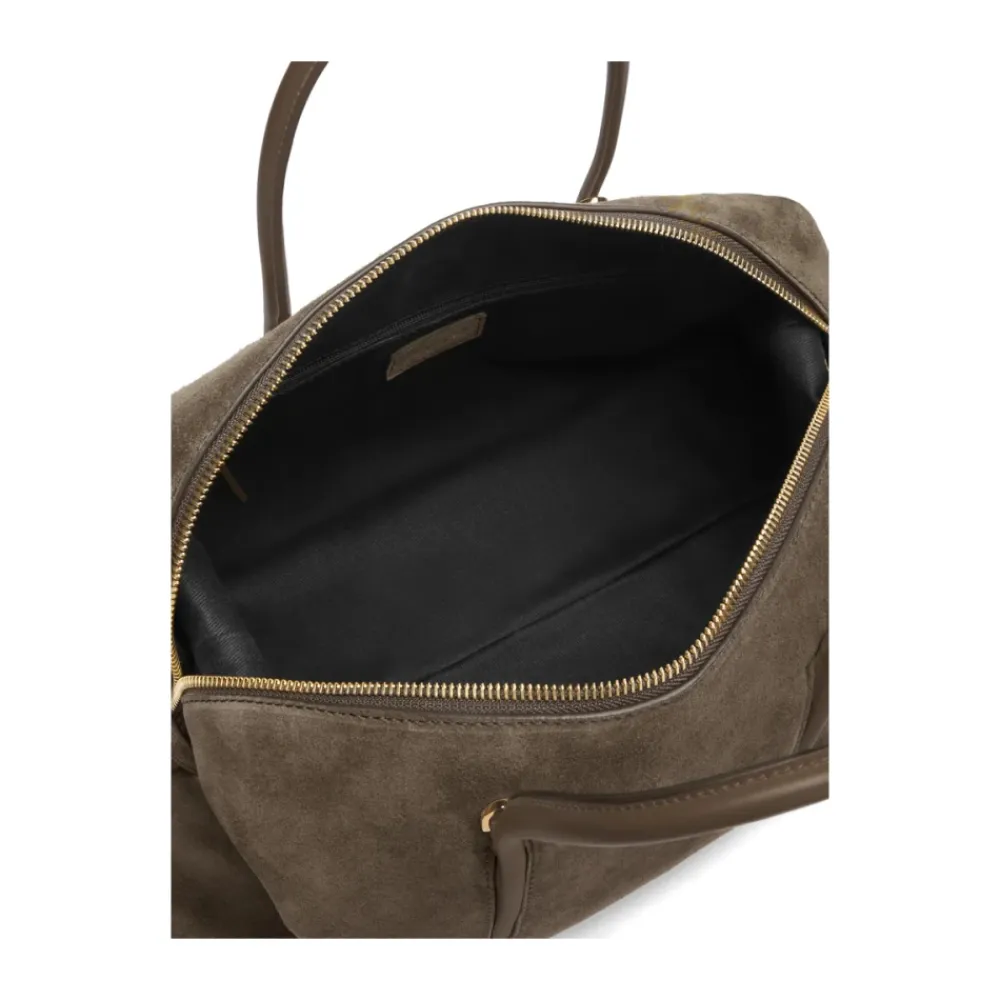 DeMelliers Midi Stockholm er en struktureret ruskindstaske til hverdagsbrug med en afrundet bowler-silhuet. Den kombinerer rørformede tophåndtag med en justerbar crossbody-rem for alsidig hverdagsbæring. Nøgleattributter: Brun | Ruskind | Justerbar crossbody-rem | Aftagelig crossbody-rem | Lynlåslukning | Tophåndtag | Metal fødder | Afrundet bowler-silhuet | Rørformede håndtag | Foliepræget logo | Sidelapper med trykknapper | Mål & pasform: Højde: 20,0 centimeter | Bredde: 34,0 centimeter | Dybde: 11,0 centimeter | Håndtagshøjde: 12,5 centimeter | Sammensætning & pleje: Ruskind | Glat læder | Bomuldsforing