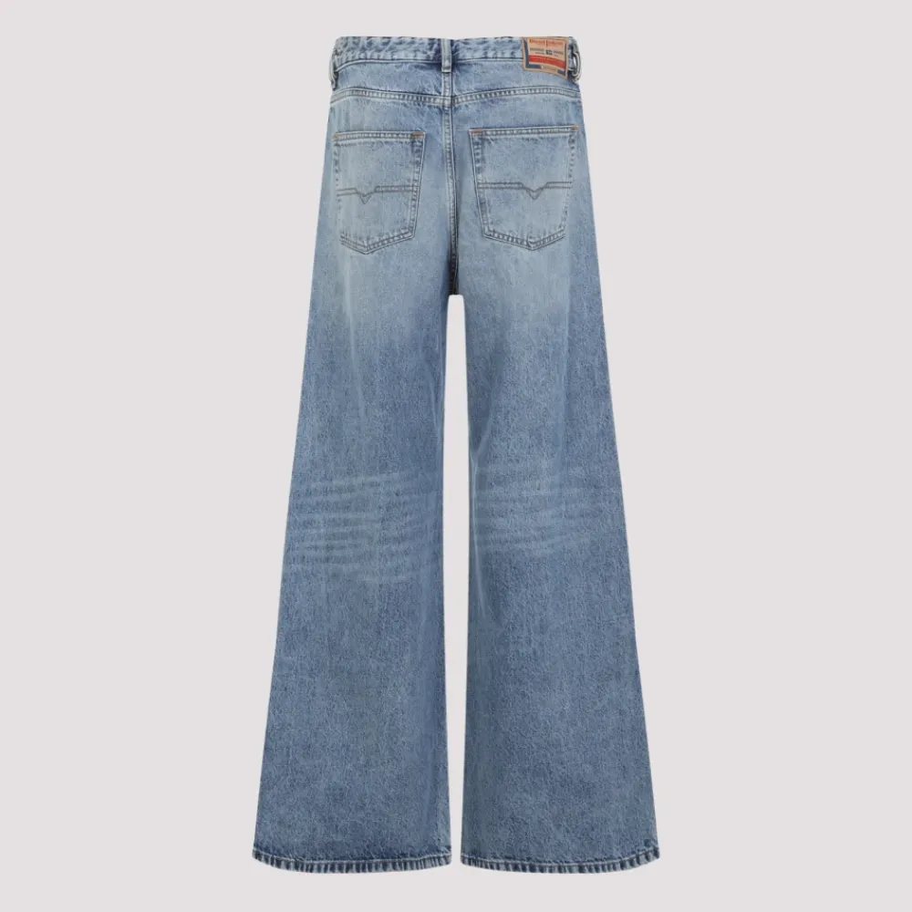 Diesel 1996 D-Sire Jeans kombinerer en afslappet silhuet med brede ben og en klassisk blå vask, der er perfekt til hverdagsbrug. Bomuldskonstruktionen giver komfort og slidstyrke. Vigtige egenskaber: Blå | Bomuld | Slidstærk | Ikke-strækbar | Knaplukning | Bæltestropper | Fem lommer | Lyseblå vask | Ren finish | Dimensioner og pasform: Afslappet pasform | Lav talje | Ekstra lange, brede ben | Sammensætning og pleje: 100% bomuld | Maskinvask kold.