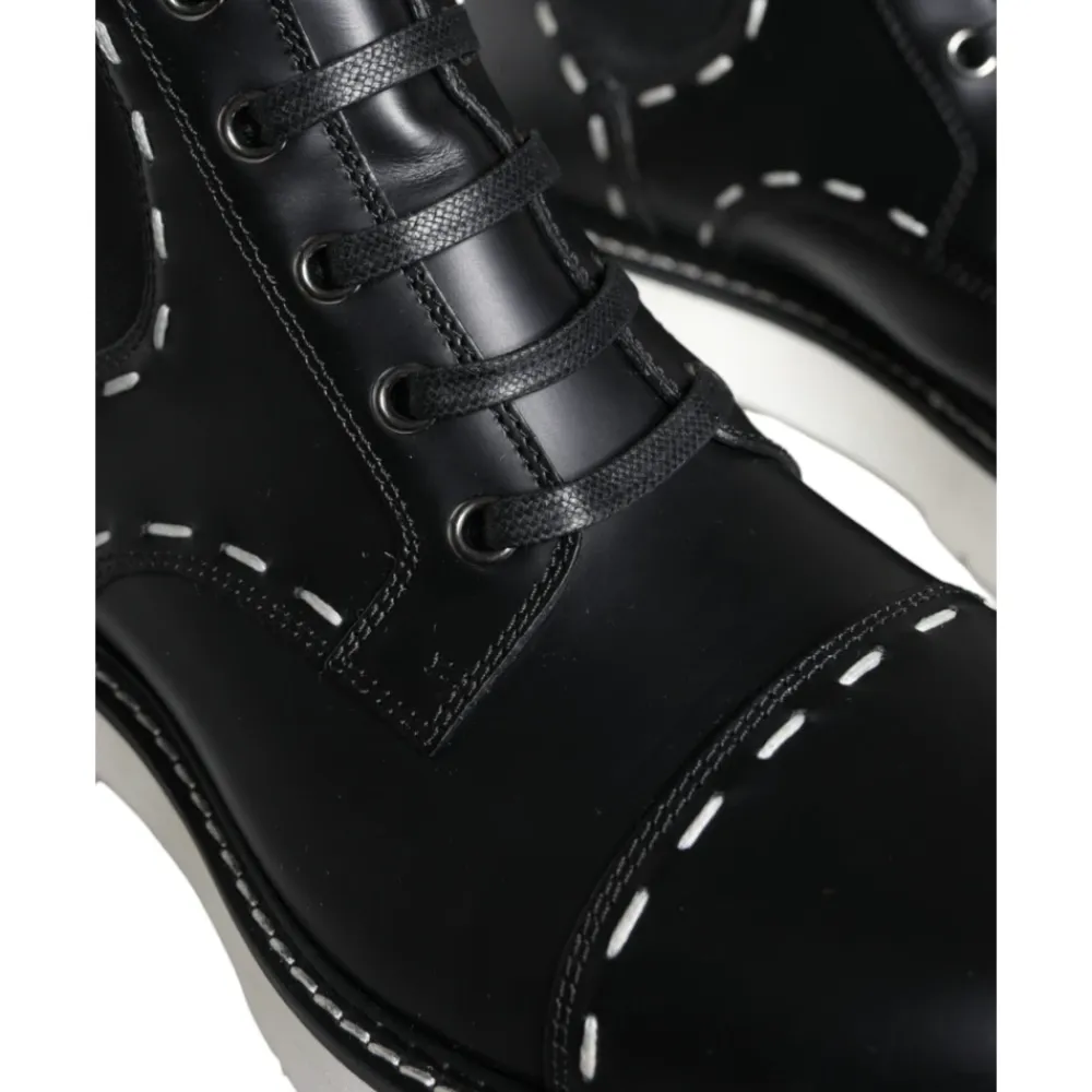 Dolce & Gabbana Lækre Støvler med Midterskaft kombinerer italiensk håndværk med en silhuet med snørebånd og elastiske sidepaneler for nem på- og aftagning. Designet balancerer struktur og komfort til hverdagsstyling. Nøgleattributter: Sort | Hvid | Læder | Holdbar gummisål | Elastiske sidepaneler for nem på/af | Snørelukning | Midterskaft silhuet | Logo detaljering | Fremstillet i Italien | Sammensætning & pleje: 100% Læder