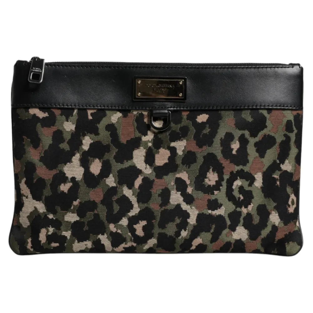 Løft din stil med denne Dolce & Gabbana pouch taske, der har et unikt camo leopard print design og luksuriøse metaldetaljer. Produkt detaljer: Multicolor | Læder | Stof | Lynlåslukning | Sølv- og guldfarvede metaldetaljer | Logo indgraveret metal hardware | Dimensioner og pasform: 30 cm x 20 cm x 1 cm |