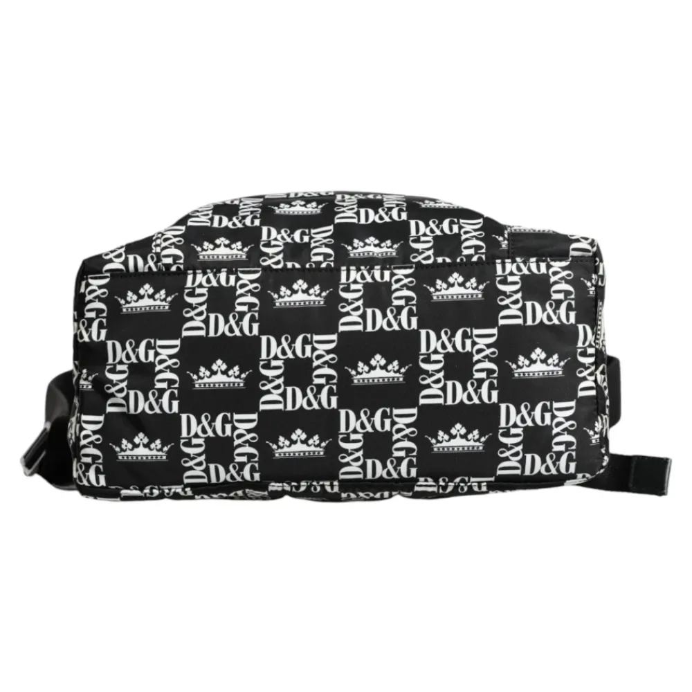 Dolce & Gabbana Backpack Bag — en nylon rygsæk med et sort-hvidt DG Crown logo print og logo-indgraveret metalhardware. Fremstillet i Italien til raffineret hverdagsbrug og praktisk opbevaring. Vigtige egenskaber: Sort | Sort og hvid | Nylon | To skulderstropper | Lynlåslukning | Sort inderfor | DG Crown logo print | Logo-indgraveret metalhardware | Kontrasterende sort-hvidt print | Mål og pasform: 30 cm x 43 cm x 12 cm | Rem: 75 cm x 5 cm | Sammensætning og pleje: 80% Nylon | 10% Polyester | 10% Kalvelæder