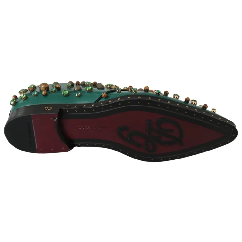 Træd ud i stil med disse fantastiske Dolce & Gabbana snøresko til kvinder. Fremstillet af læder af høj kvalitet og prydet med flerfarvede krystaller, er disse grønne kjolesko et ægte modeudtryk. Produceret i Italien med enestående håndværk, har de det ikoniske Dolce & Gabbana-logo og en lædersål. Hæv dit skospil med dette eksklusive par.