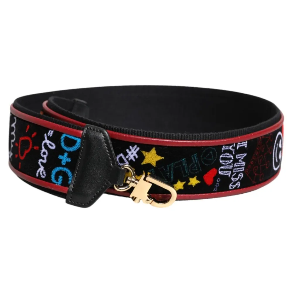 Opgrader din håndtaske med dette Dolce & Gabbana skulderremstilbehør, der har et slående flerfarvet print mod en klassisk sort baggrund. Produkt detaljer: Sort | Flerfarvet | Bomuld | Logo detaljer | Sammensætning og pleje: 85% Bomuld | 10% Kalv | 5% Lam | Pletrensning kun
