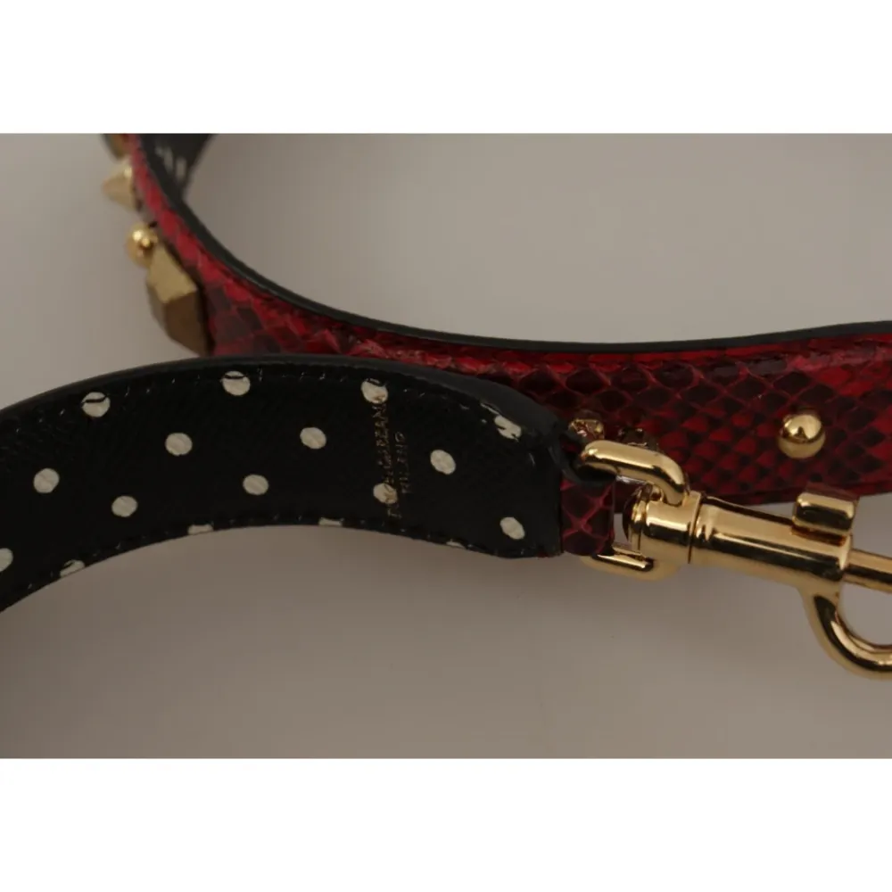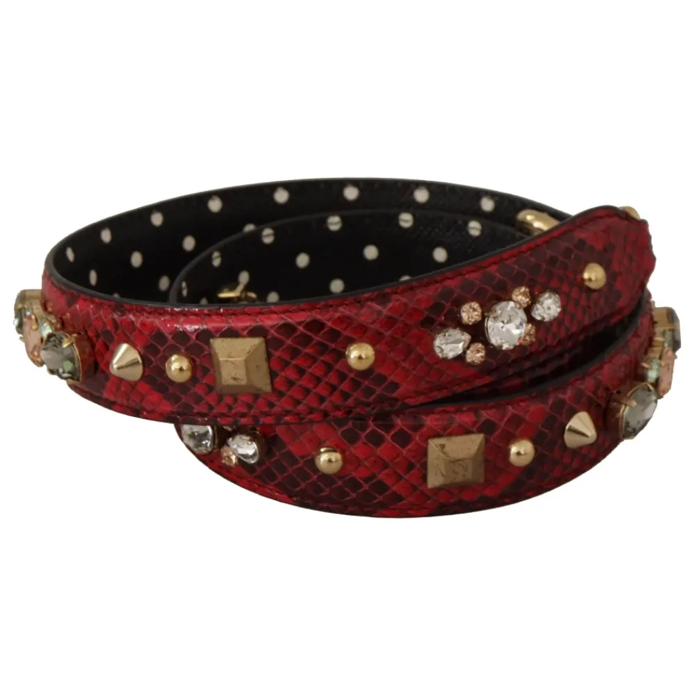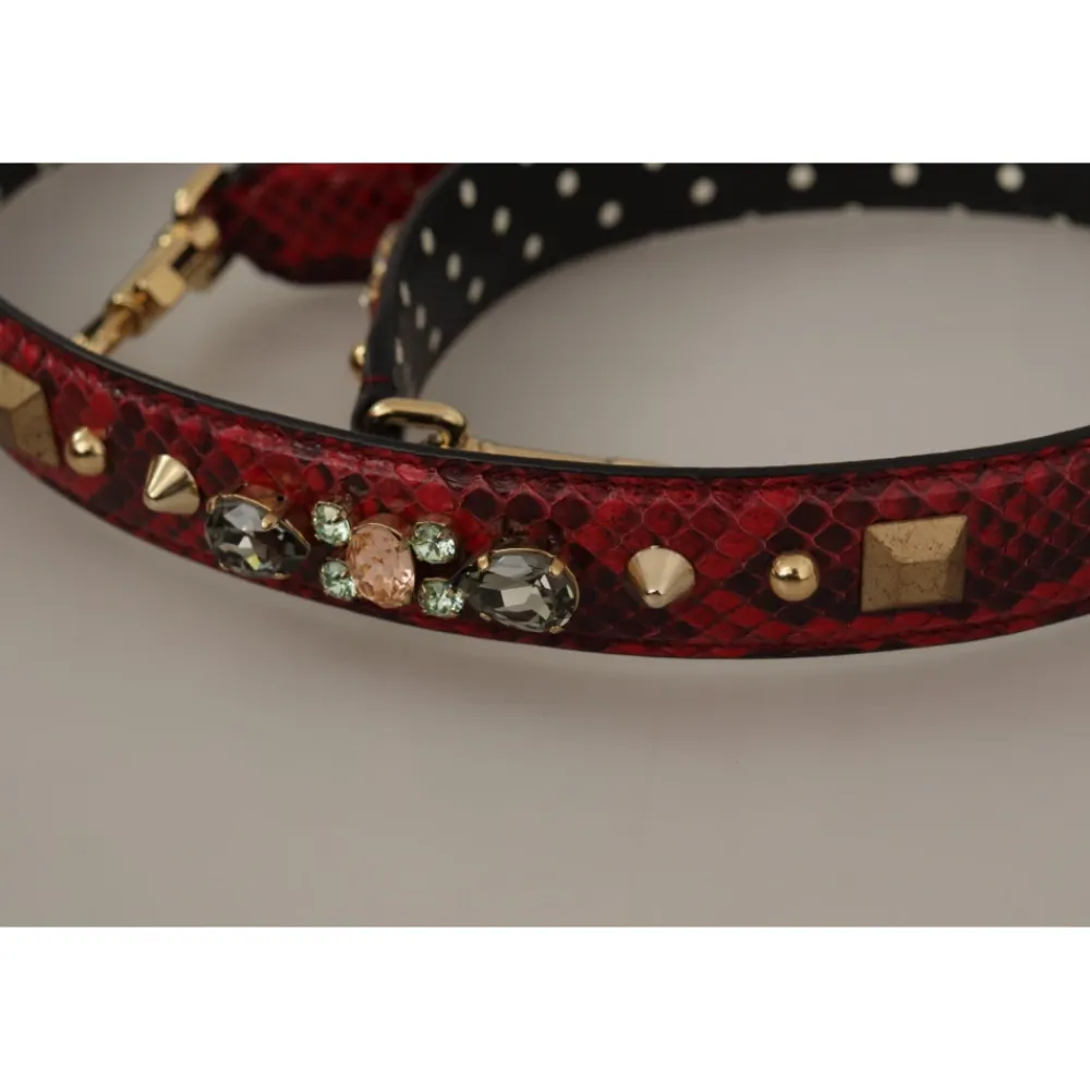 Dolce & Gabbana Crystals Vendbar Skulderrem tilføjer en markant finish til dine håndtasker, fremstillet i pythonlæder med krystaldetaljer og guldfarvede karabinhager for hurtig fastgørelse. Vigtige egenskaber: Rød | Guld | Pythonlæder | Guldfarvede karabinhager for nem fastgørelse | Vendbart design | Python-skin tekstur | Krystaludsmykning | Guldfarvede metaldetaljer | Slank profil | Mål & pasform: 100 cm x 3 cm | Sammensætning & pleje: 100% Pythonlæder