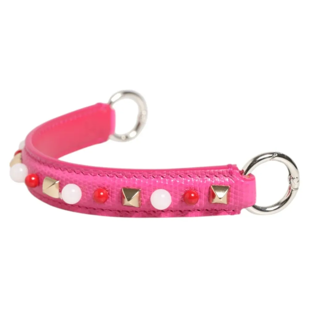 Opgrader din yndlings taske med denne spritnye, 100% autentiske Dolce & Gabbana håndtagrem. Lavet af premium lyserød læder, udsmykket med røde og hvide perledetaljer og guldtonede pyramide nitter for et legende, men luksuriøst look. Denne skulderrem til kvinder har sølvtonede metalringe til sikker fastgørelse. Produceret i Italien.
