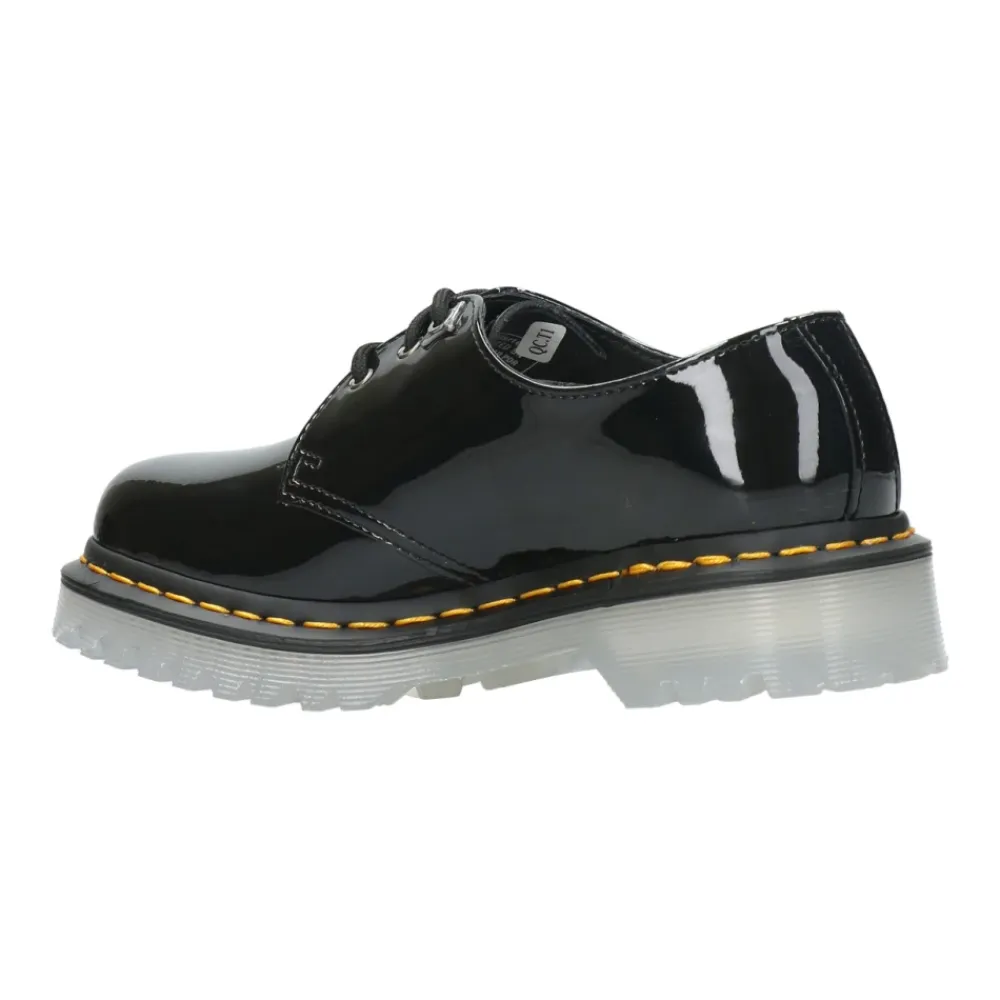 Træd ud med stil i disse sorte laklædersko med snørebånd fra Dr. Martens, designet til den modebevidste person. Fremstillet med en slidstærk læderoverflade og en robust PVC-sål, sikrer disse sko både komfort og lang levetid. Produkt detaljer: Sort | Læder | Tre snørehuller for sikker pasform | Laklæder finish | Dimensioner og pasform: Almindelig pasform | Sammensætning og pleje: 100% Læder | 100% PVC | Aftørres med en fugtig klud