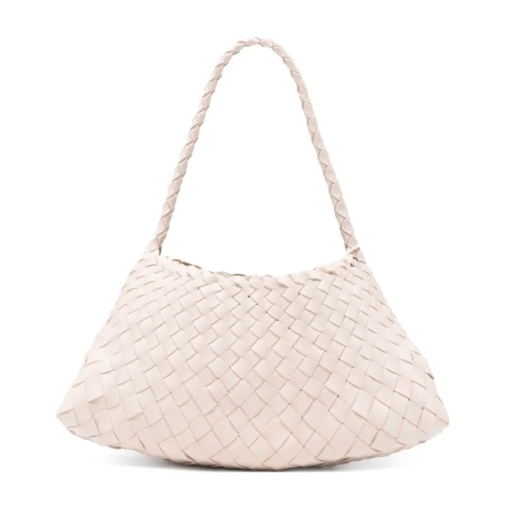 Dragon Diffusions Rosanna Vævet Læder Skuldertaske fremviser brandets raffinerede håndværk med håndvævet læder og en distinkt vævet tekstur. Håndlavet med et tophåndtag og leveres med en beskyttende støvpose, den giver praktisk hverdagsbrug med en blød, feminin finish. Nøgleattributter: Beige | Lys pink | Læder | Tophåndtag | Inkluderer beskyttende støvpose | Håndvævet lædertekstur | Håndlavede detaljer | Skuldertaskesilhuet | Blød, feminin æstetik | Dimensioner og pasform: Skulder- og tophåndtag | Sammensætning og pleje: Læder