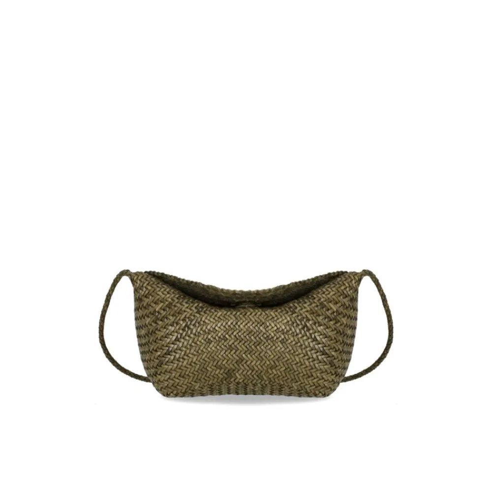 Dragon Diffusion Corsina Crossbody Taske kombinerer håndvævet læderhåndværk med et kompakt, khaki-grønt diagonalt mønster – designet til håndfri hverdagsbrug. Vigtigste egenskaber: Grøn | Khaki grøn | Læder | Ikke-justerbar skulderrem | Magnetisk flaplukning | Diagonalt vævet mønster | Uforet | Flap-over silhuet | Mål og pasform: 21 x 14 x 9 cm | Sammensætning og pleje: 100% læder